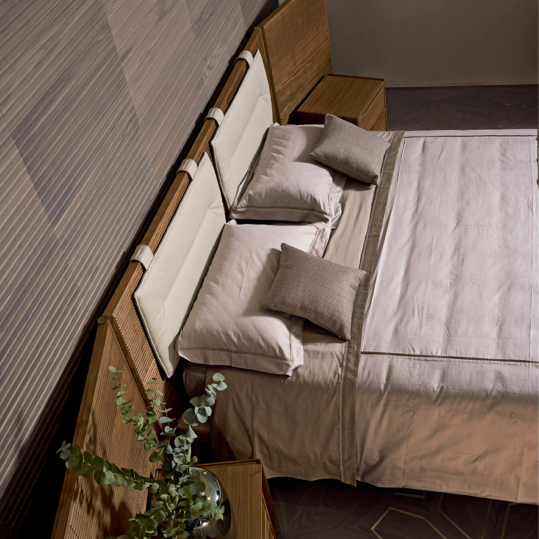 Το μασίφ κρεβάτι καρυδιάς “Dynamic” προσφέρει έναν μεταβλητό αριθμό πάνελ με τρισδιάστατη επιφάνειαστο κεφαλάρι του. Όποιος κι αν είναι ο συνδυασμός, το αποτέλεσμα είναι πάντα επιβλητικό και κάνει το κρεβάτι “Dynamic” τέλειο για ένα υπνοδωμάτιο με σύγχρονο και ουσιαστικό στυλ. Το κρεβάτι “Dynamic” μπορεί να συνδυαστεί με το κομψό μαξιλάρι επενδυμένο με δέρμα.