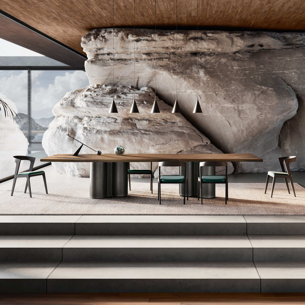 Η έμπνευση για τα μεταλλικά πόδια Pila προέρχεται από τις βασικές αρθρώσεις στο επάνω μέρος του τραπεζιού. Οι πλίνθοι είναι κατάλληλοι για μεγάλα τραπέζια από 255cm και πάνω- κατασκευάζονται ενώνοντας δύο σωληνωτά μεταλλικά. Κατασκευάζεται σε διαφορετικές διαστάσεις, φινιρίσματα και μέταλλα κατόπι επικοινωνίας.