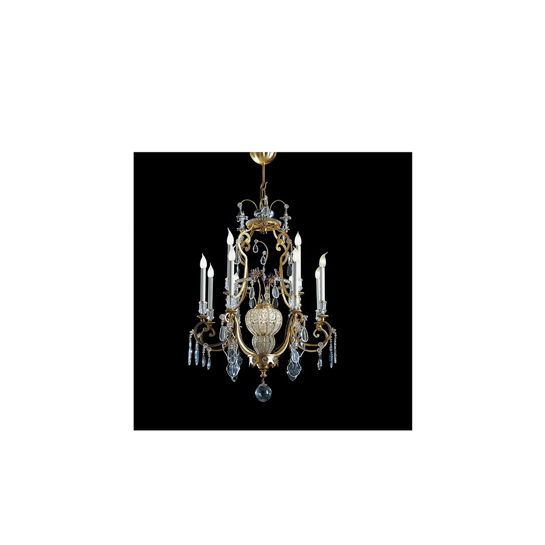 Φωτιστικό οροφής, ιταλικής προέλευσης, από σίδερο, ορείχαλκο, κρύσταλλο, γυαλί & αμέθυστο, σε παλαιωμένο χρυσό φινίρισμα.