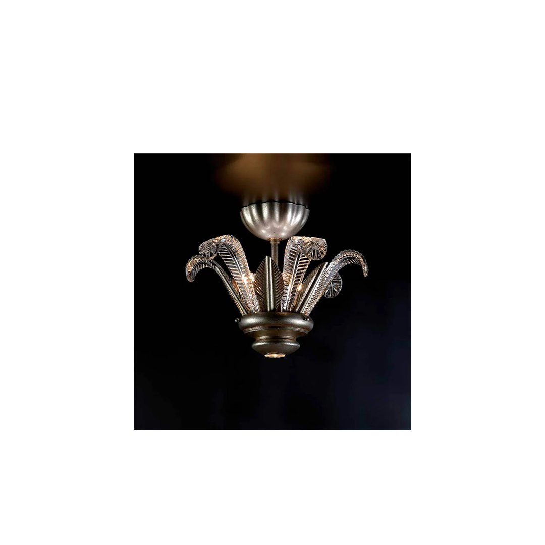 Πλαφονιέρα, ιταλικής προέλευσης, από σίδερο, ορείχαλκο & κρύσταλλο, σε ασημί φινίρισμα.