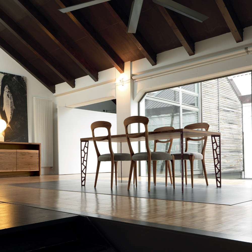 Η καρέκλα Capotavola από μασίφ ξύλο ενσωματώνει την εκλεπτυσμένη κομψότητα του ιταλικού σχεδιασμού. Κατασκευασμένη στην Ιταλία στο χέρι, διαθέτει μασίφ δομή καρυδιάς canaletto με ακρυλικό φινίρισμα και φόδρα από δέρμα premium ή ύφασμα σε μια σειρά διαφορετικών χρωμάτων. Διατίθεται με ή χωρίς υποβραχιόνια καθώς και σε διαφορετικό φινίρισμα.