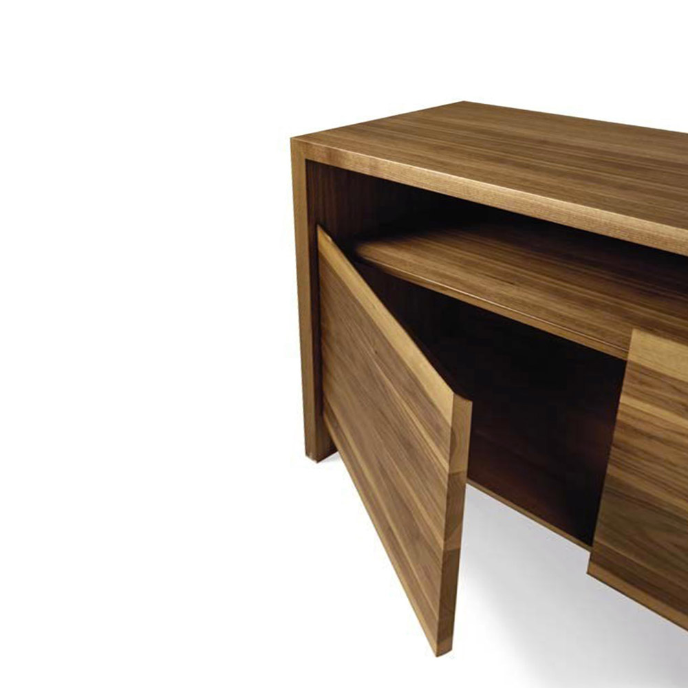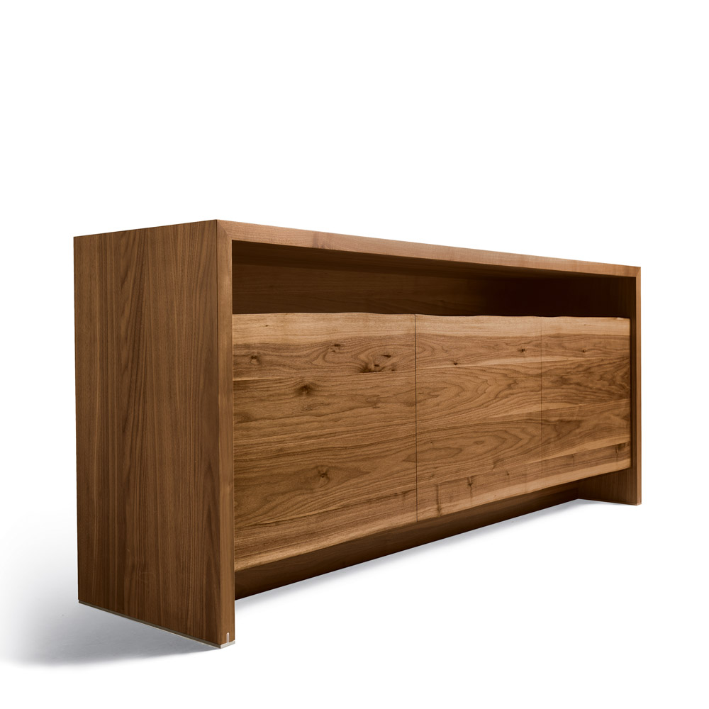 Χειροποίητος στην Ιταλία με πάθος και τεχνογνωσία, ο μπουφές Puraforma συνδυάζει αισθητική με εκλεπτυσμένο σχεδιασμό. Οι πόρτες σε αποφλοιωμένο ξύλο αναδεικνύουν το λοξό κόψιμο μέσα από τη χρωματική διαφορά της καρυδιάς. Το επάνω μέρος έχει ένα κυματιστό αποτέλεσμα που δίνει στην επιφάνεια μια εκλεπτυσμένη διακόσμηση.