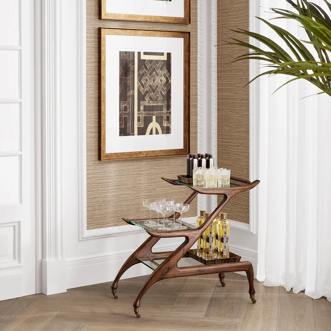 Με τις γλυπτές του γραμμές και τη χαρακτηριστική, πολυεπίπεδη σιλουέτα του, το Manzo Trolley φέρνει μια vintage πινελιά σε έναν σύγχρονο χώρο φιλοξενίας. Σχεδιασμένο από πλούσιο ξύλο με διαφανή γυάλινα ράφια, αποτελεί έναν συνδυασμό πρακτικότητας και κομψότητας — ιδανικό για να σερβίρετε ποτά και να υποδέχεστε τους καλεσμένους σας με στυλ.