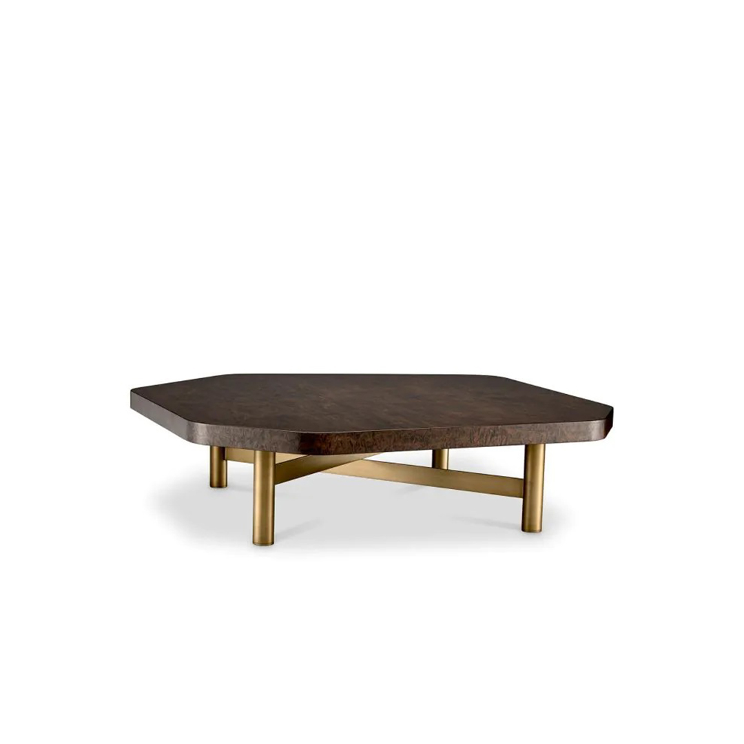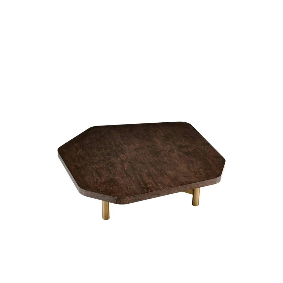 Η λαμπερή γοητεία του καπλαμά σφενδάμου θα φωτίσει το χώρο σας με μια πολυτελή γυαλάδα, ενώ το φινίρισμα από βουρτσισμένο ορείχαλκο δημιουργεί μια μαγευτική αντιπαράθεση υλικών. Το Coffee Table Oracle στέκεται ως ένα υπέροχο κεντρικό κομμάτι που ξεπερνά τη συνηθισμένη διακόσμηση.