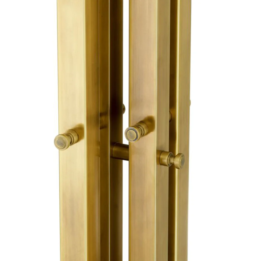 Η κομψή του βάση είναι φτιαγμένη από τραβερτίνη – φυσική πέτρα ανθεκτική και αισθητικά ξεχωριστή. Το άνω μέρος, με φινίρισμα vintage ορείχαλκου, συνδυάζει την παράδοση με τον μοντερνισμό για ένα διαχρονικό αποτέλεσμα. Τοποθετήστε το σε μια γωνία ή διάδρομο για να αναδείξετε τον χώρο με εκλεπτυσμένη κομψότητα.