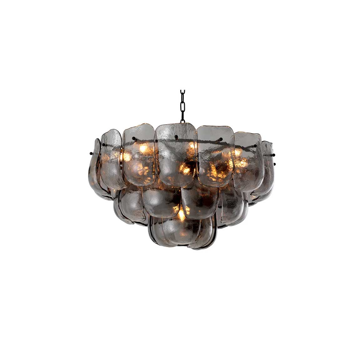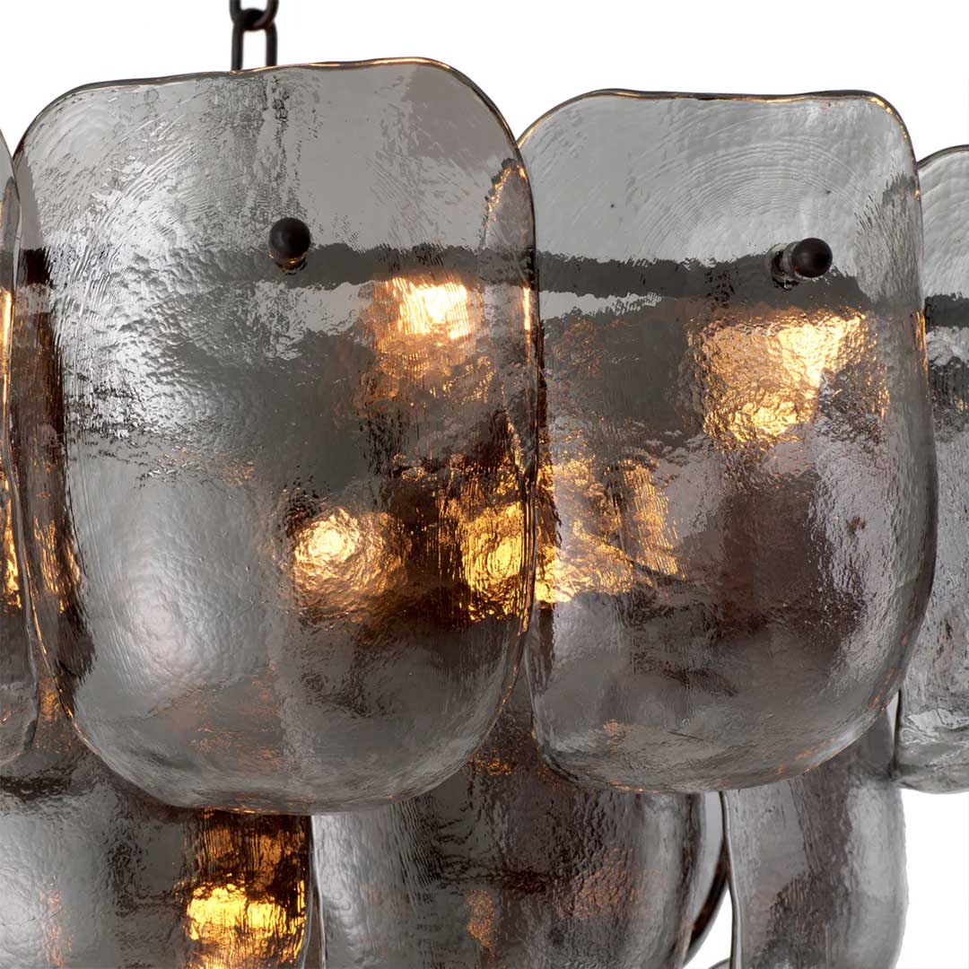 Αυτός το πολυτελές φωτιστικό διαθέτει γυαλί σε απόχρωση σαμπάνιας,  με  φινίρισμα από μπρούντζο, εκπέμποντας μια γοητευτική λάμψη. Ο σχεδιασμός του γυαλιού προσδίδει μια αίσθηση μεγαλοπρέπειας, κάνοντάς τον ένα εντυπωσιακό κομμάτι. Ιδανικός για εκείνους που εκτιμούν την  κομψότητα, αυτός ο πολυέλαιος φωτίζει το χώρο σας με διαχρονική ματιά. Αναβαθμίστε τον χώρο σας με τη  γοητεία του Gustave.