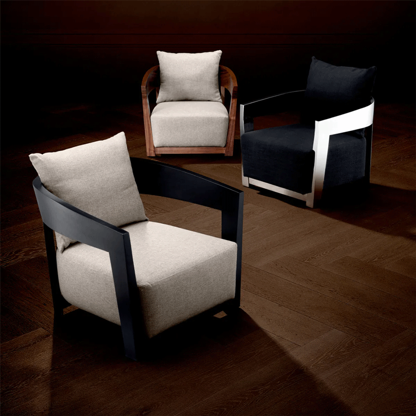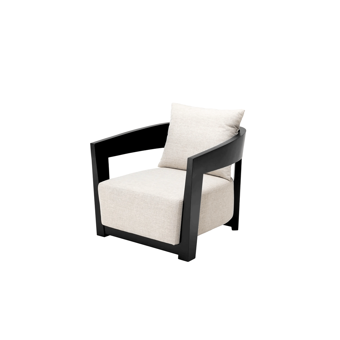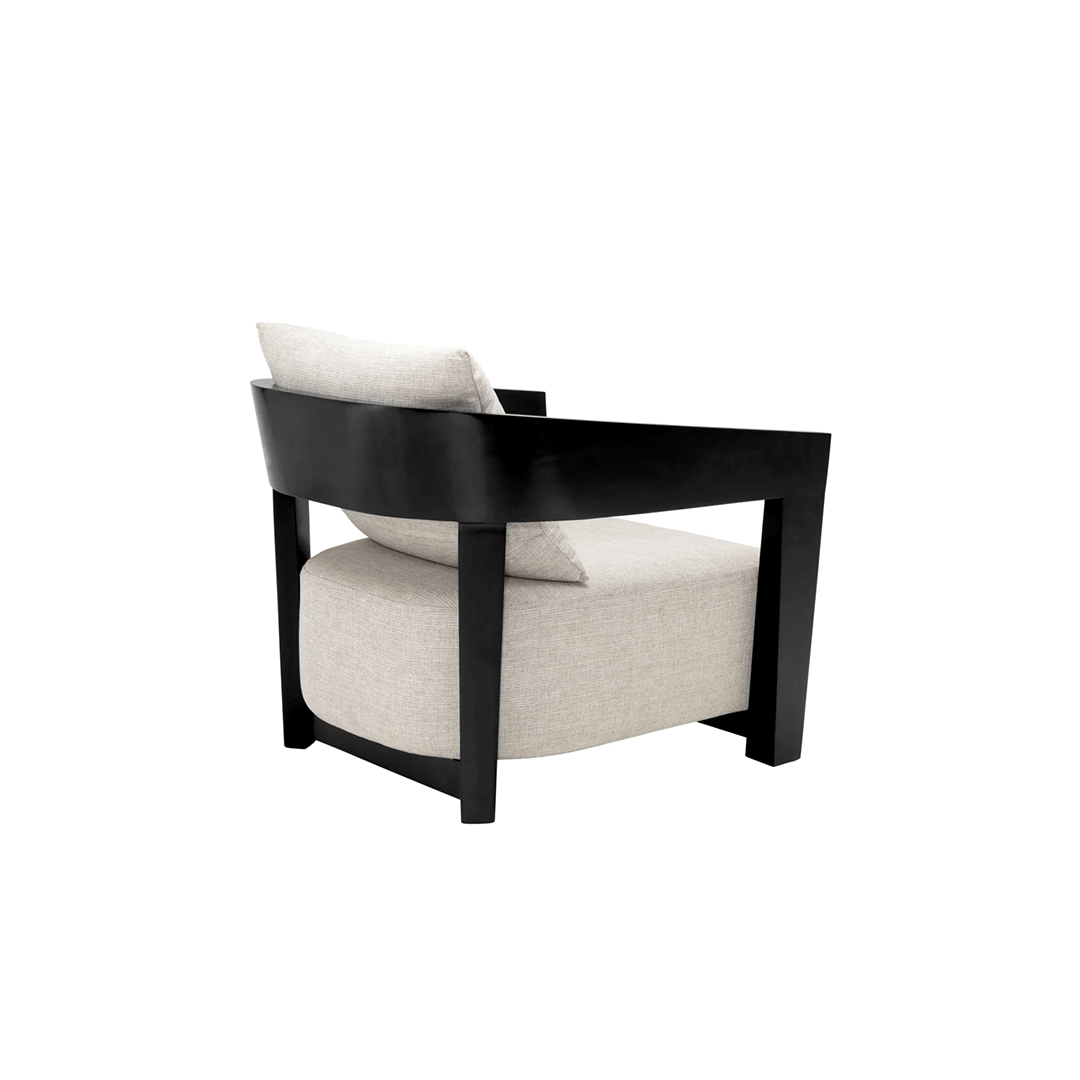 Η καρέκλα Rubautelli αποτελείται από μαύρο ξύλινο σκελετό και διαθέτει φυσική επένδυση και μαξιλάρι Loki.