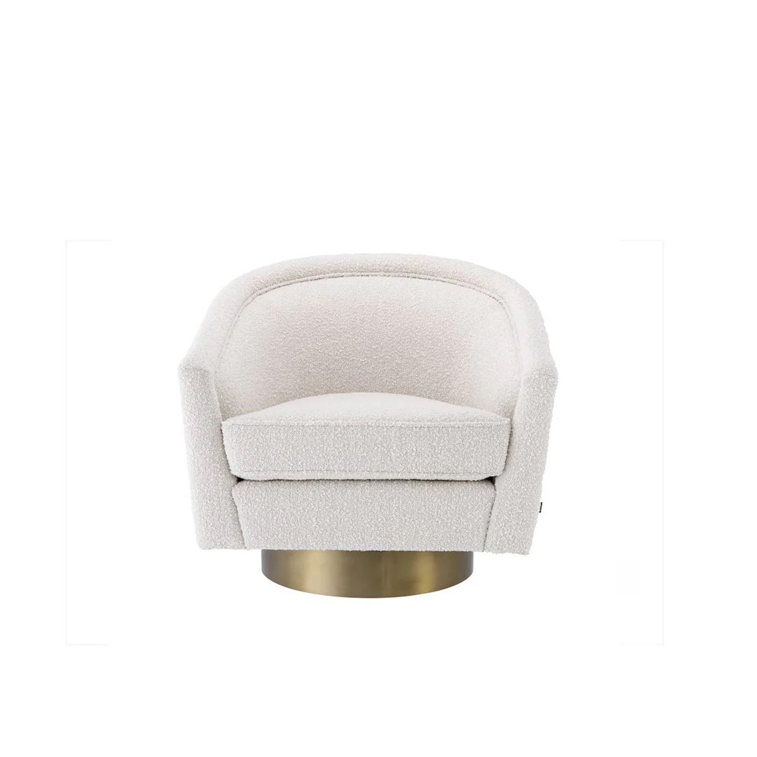Επενδυμένη με πολυτελή, κρεμ μπουκλέ, η περιστρεφόμενη καρέκλα Catene ταιριάζει εξίσου στο σπίτι σε κλασικούς και μοντέρνους εσωτερικούς χώρους. Αυτή η υπέροχη καρέκλα, με λεία κυρτή πλάτη και επένδυση, προσφέρει μια κομψά πολυτελή εμπειρία καθίσματος με απόλυτη άνεση.