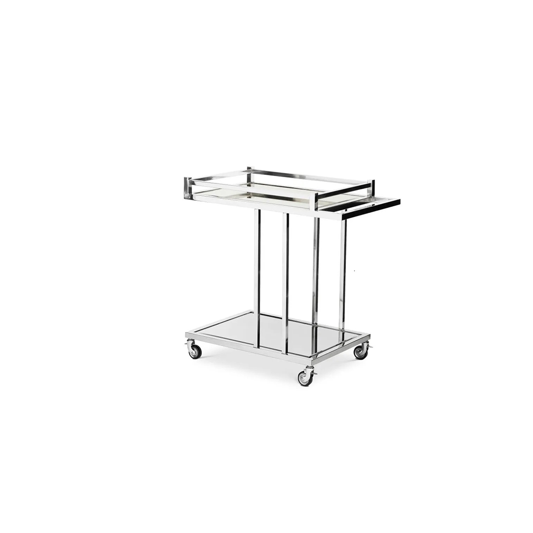 Το τρόλεϊ Beverly Hills περιλαμβάνει ένα κομψό πλαίσιο από ανοξείδωτο χάλυβα με γυαλισμένο ανοξείδωτο χάλυβα και λοξότμητο γυαλί καθρέφτη. Μια τέλεια προσθήκη για το σερβίρισμα ποτών και κοκτέιλ, εύκολο στη μετακίνηση λόγω των τροχών και της κομψής λαβής του.
