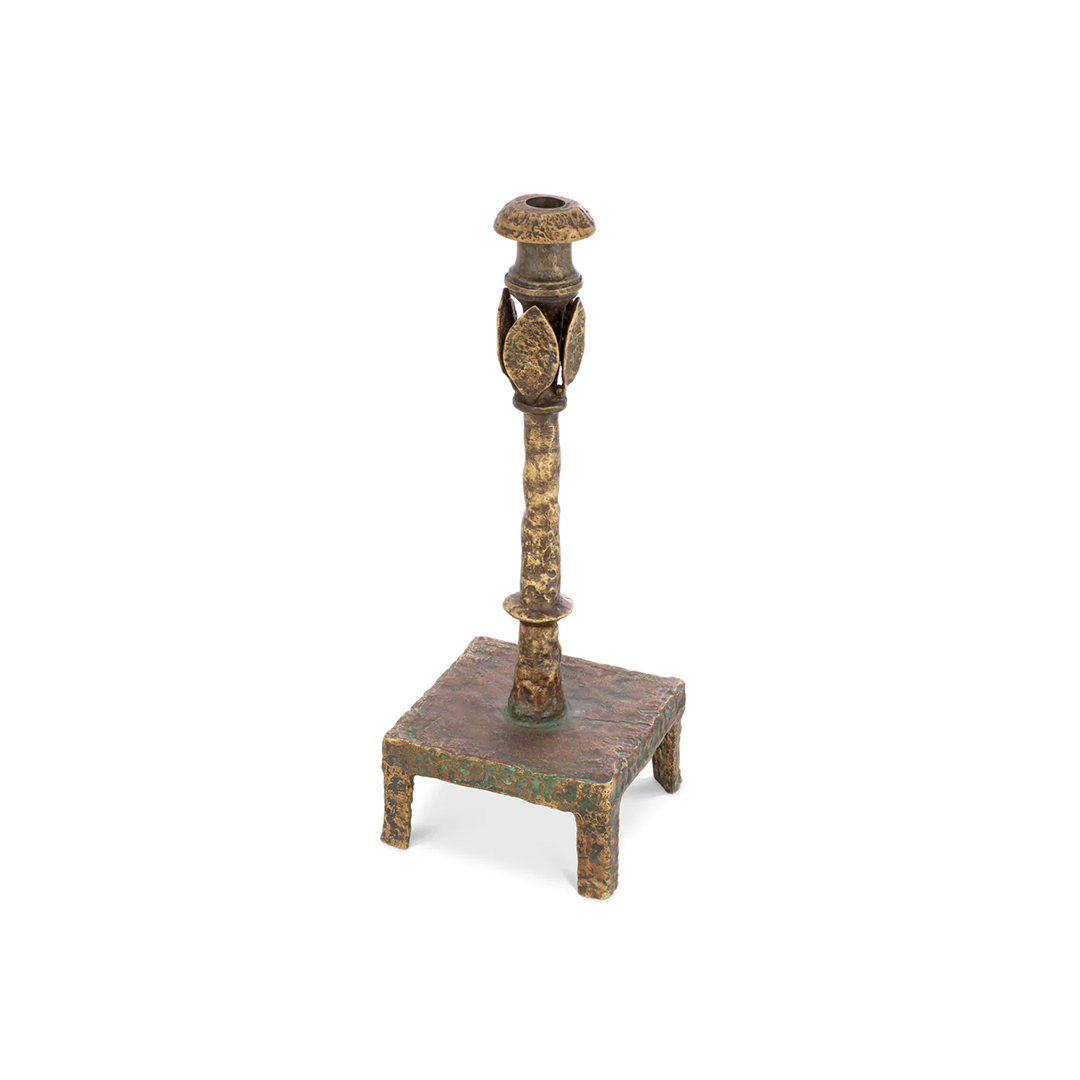 Ιδανικό για κωνικά κεριά, αυτό το παραδοσιακά κατασκευασμένο κηροπήγιο χαρακτηρίζεται από μια αντικέ εμφάνιση που ενισχύεται από ένα vintage φινίρισμα ορείχαλκου.