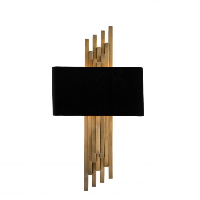 Το επιτοίχιο φωτιστικό Caruso διαθέτει vintage ορειχάλκινο φινίρισμα και ασορτί ορθογώνιο μαύρο αμπαζούρ.