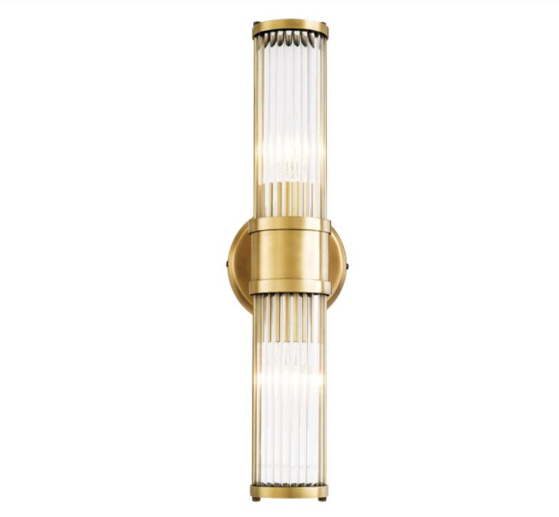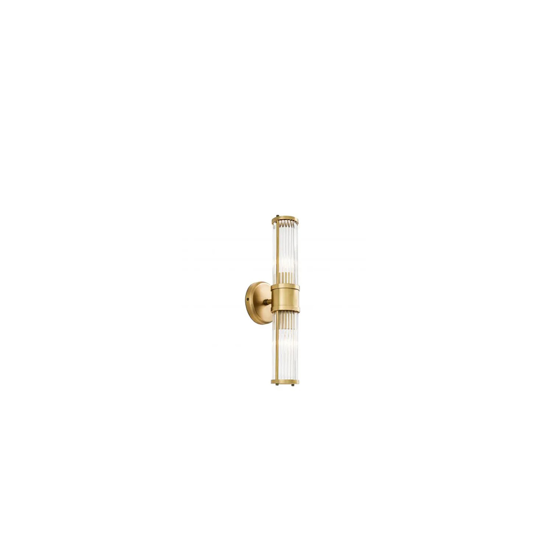 Το Επιτοίχιο Art Deco φωτιστικό Claridges διαθέτει φινίρισμα από αντίκε ορείχαλκο και δύο αποχρώσεις φωτιστικού από ραβδωτό και λοξότμητο διαφανές γυαλί