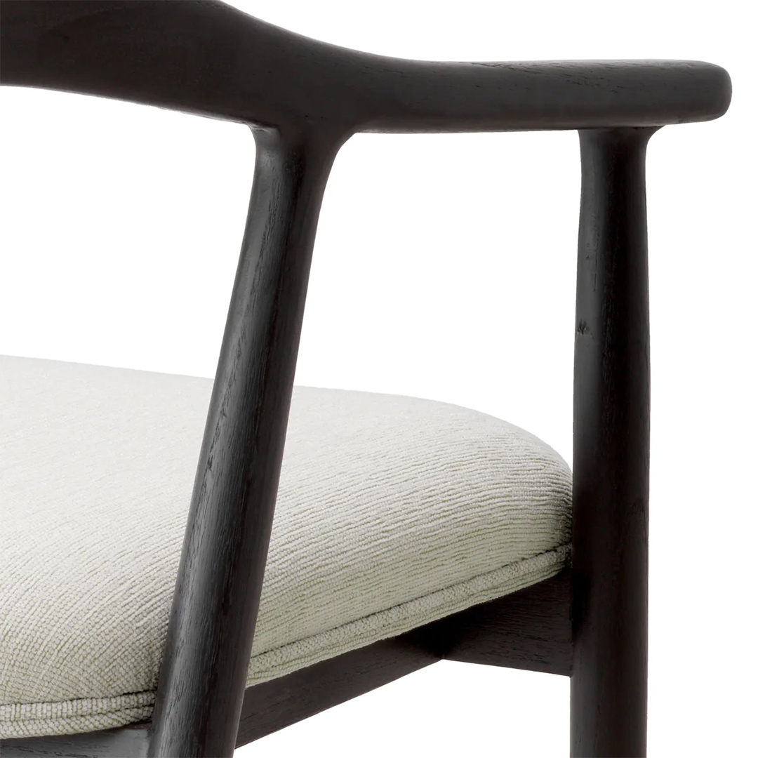 Ο κομψός μαύρος σκελετός της προσφέρει εντυπωσιακή αντίθεση με το βελούδινο κρεμ ύφασμα Sentier, μετατρέποντας κάθε τραπεζαρία σε ένα πολυτελές καταφύγιο. Αυτή η καρέκλα αποτελεί απόδειξη της δέσμευσης του Eichholtz για ανώτερη δεξιοτεχνία και αποκλειστικό σχεδιασμό που αναβαθμίζει το σπίτι σας.