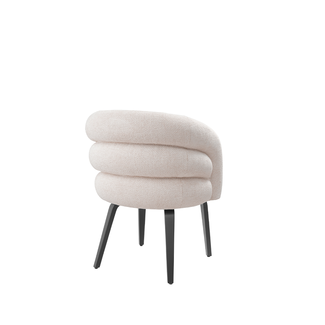Σας παρουσιάζουμε την κομψή καρέκλα τραπεζαρίας Novelle στη διαχρονική απόχρωση Lyssa Off-White. Με ξεχωριστό σχεδιασμό, η πλάτη του καθίσματος είναι διακοσμημένη με τρία βελούδινα ρολά, παρέχοντας άνεση και στυλ για να δημιουργήσει μια αίσθηση πολυτέλειας. Υποστηριζόμενη από μαύρα πόδια, αυτή η καρέκλα αποπνέει μια κομψή και μοντέρνα γοητεία, που συνδυάζεται αβίαστα σε κάθε χώρο τραπεζαρίας.