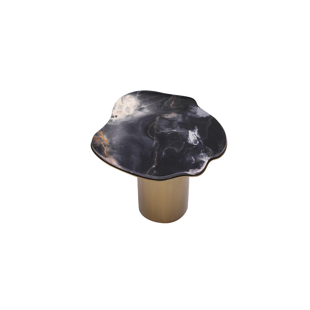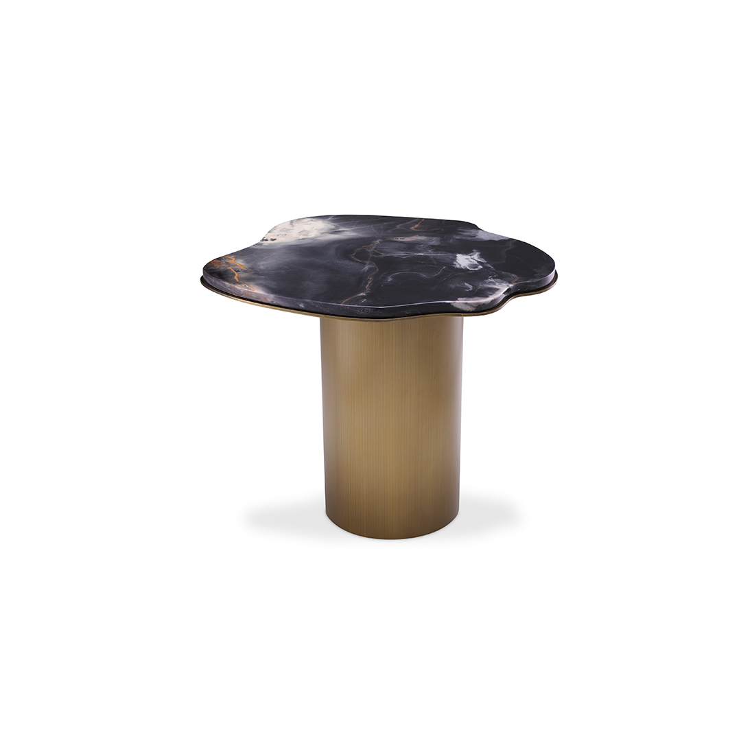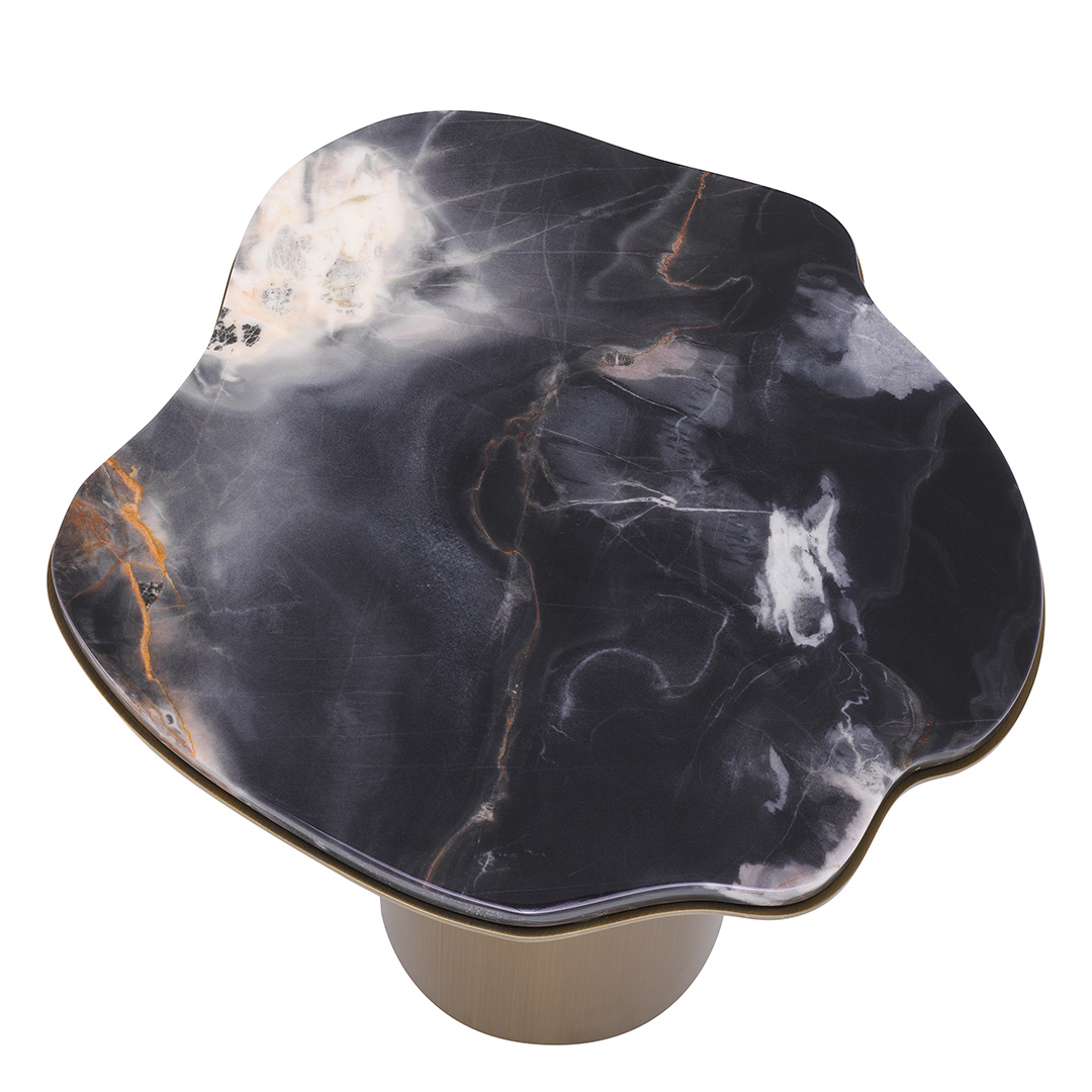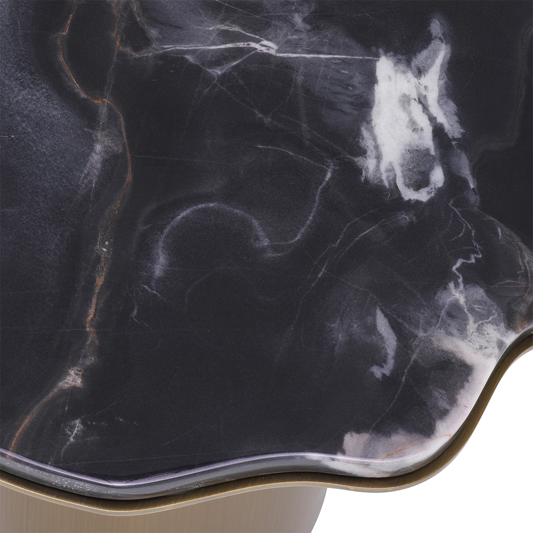 Βυθιστείτε στην πολυτελή ατμόσφαιρα που φέρνει το Shapiro Side Table στον χώρο σας. Η σαγηνευτική παρουσία του εκπέμπει πολυτέλεια και κομψότητα, επιδεικνύοντας μια αξιοσημείωτη μαρμάρινη κορυφή που χορεύει χαριτωμένα με τα μοναδικά μοτίβα και τις φλέβες της. Το σχήμα ελεύθερης μορφής προσθέτει ένα στοιχείο καλλιτεχνικής έκφρασης, αναδεικνύοντάς το σε ένα εξαιρετικό κομμάτι λειτουργικής τέχνης. Το φινίρισμα της βάσης από ορείχαλκο αποπνέει χλιδή, συμπληρώνοντας τέλεια τη γοητεία του μαρμάρου.