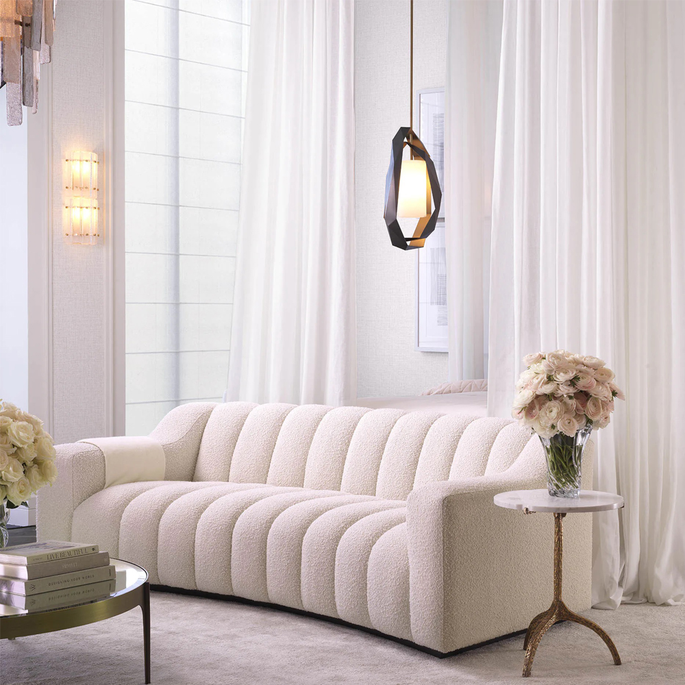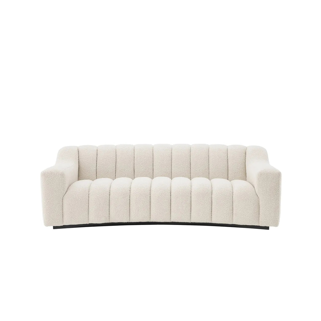 Επενδυμένος με μπουκλέ ύφασμα σε κρεμ χρώμα, ο καναπές Kelly S θα φέρει γοητεία και ζεστασιά στο σαλόνι σας. Με την απαλά κυρτή σχεδίασή του και τις βαθιές ραφές καναλιών, αυτός ο πλούσιος καναπές θα σας προσφέρει ένα πολύ άνετο κάθισμα.
