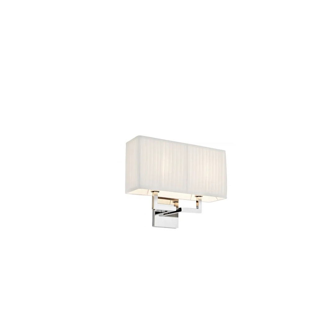Το επιτοίχιο φωτιστικό Westbrook διαθέτει στήριγμα τοίχου από νίκελ και λευκό πτυχωτό αμπαζούρ.