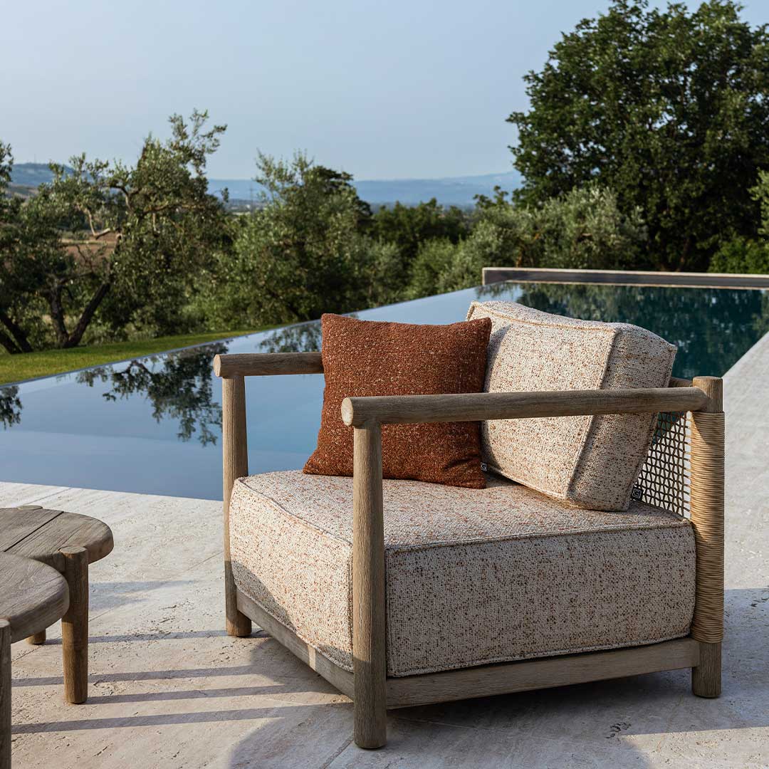 Η πολυθρόνα Mieke της Gommaire συνδυάζει φυσική κομψότητα και εργονομικό σχεδιασμό, προσφέροντας υψηλή αισθητική και άνεση για εξωτερικούς χώρους. Κατασκευασμένη από ανθεκτικό teak με χειροποίητη ύφανση wicker και αφαιρούμενα μαξιλάρια από υφάσματα εξωτερικού χώρου, αποτελεί ιδανική επιλογή για χώρους που αποπνέουν χαλάρωση και στυλ.