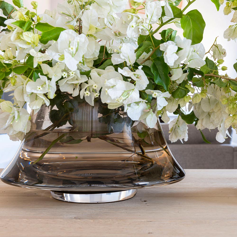 Το βάζο Marah από γυαλί topaz είναι ένα εκλεπτυσμένο διακοσμητικό αντικείμενο που συνδυάζει τη διαφάνεια με τη διαχρονική κομψότητα. Οι καθαρές, καμπύλες γραμμές του και ο μίνιμαλ σχεδιασμός το καθιστούν ιδανικό είτε για φρέσκα λουλούδια είτε ως αυτόνομο διακοσμητικό στοιχείο. Μια σοφιστικέ πινελιά για σύγχρονους χώρους.