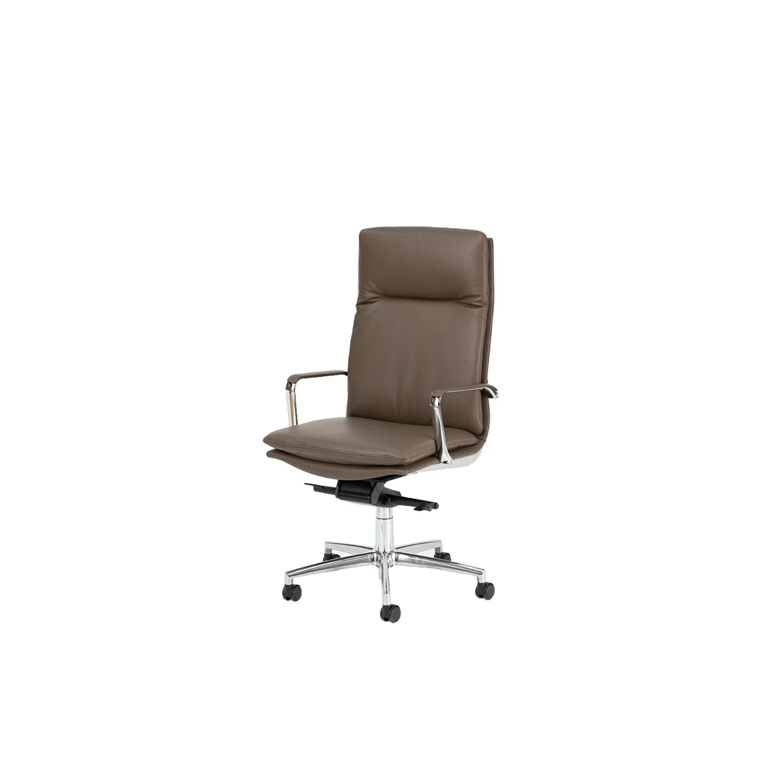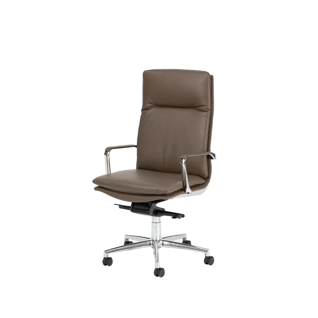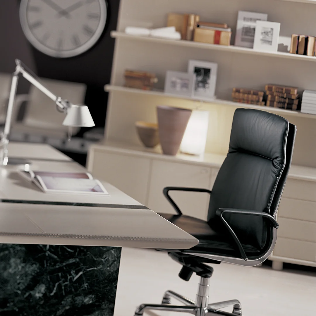 Η καρέκλα γραφείου Epico Soft 519 είναι επενδεδυμένη με μαλακό δέρμα, με μπράτσα επενδεδυμένα είτε με το ίδιο δέρμα είτε με χρωμιωμένο αλουμίνιο. Η αρθρωτή της δομή από γυαλιστερό αλουμίνιο, σε συνδυασμό με τη βάση σε γυαλιστερό ή μαύρο λακαριστό αλουμίνιο, εξασφαλίζει άνεση και ανθεκτικότητα. Οι λειτουργίες περιστροφής και ανάκλισης ολοκληρώνουν τον εκλεπτυσμένο σχεδιασμό της.