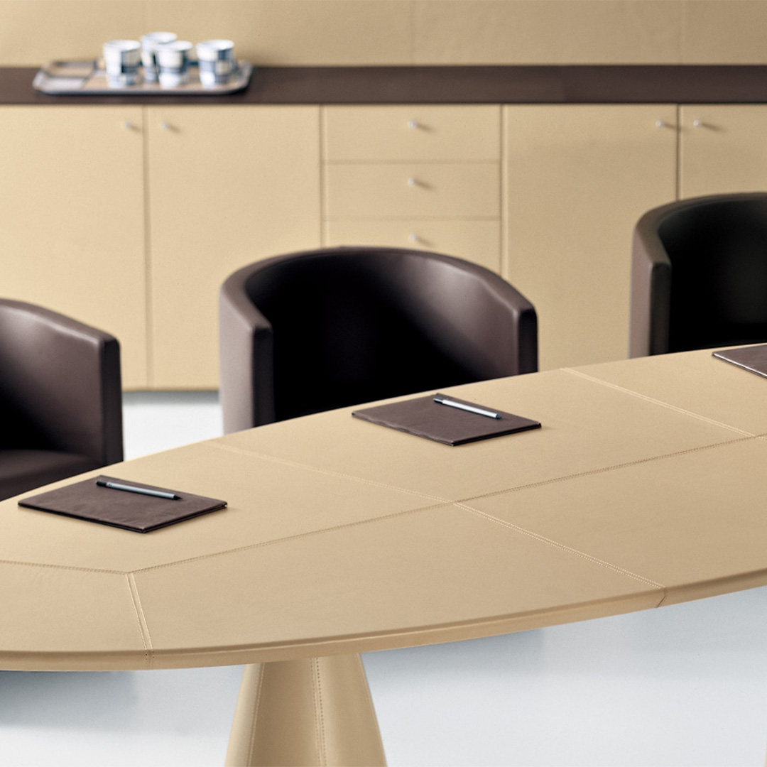 Μια συλλογή από γραφεία και τραπέζια συνεδριάσεων με σκληρό δέρμα ή γυάλινες επιφάνειες. Οι βάσεις διατίθενται από αλουμίνιο με σατινέ φινίρισμα ή επικαλυμμένες με σκληρό δέρμα. Αυτά τα γραφεία και τα τραπέζια μπορούν να συνδυαστούν με το συρτάρι και άλλα ντουλάπια της σειράς Epico.