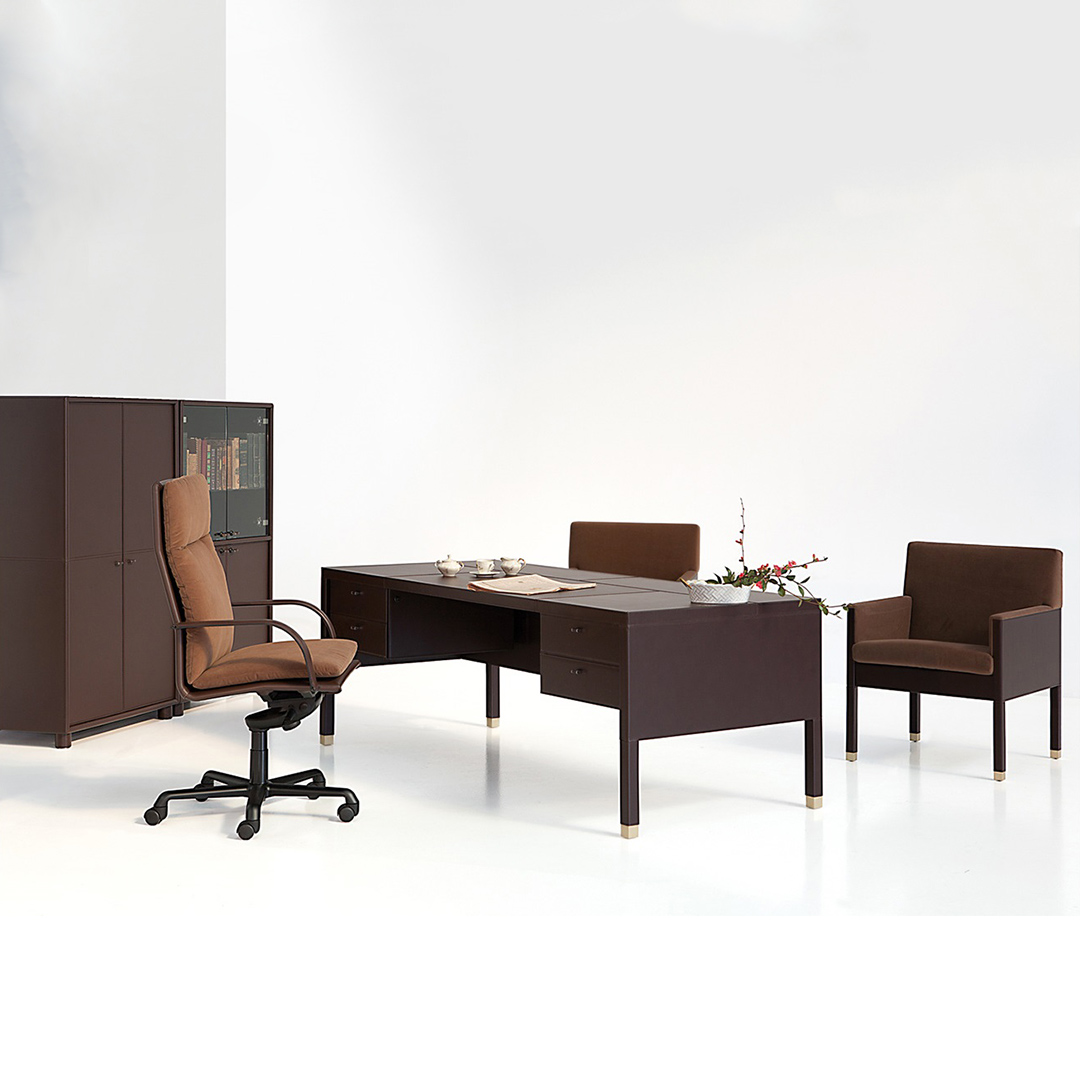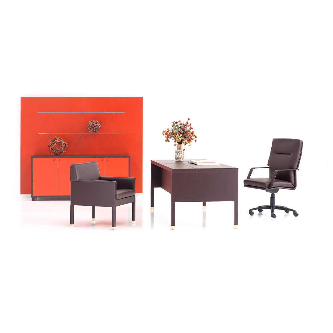 Σκληρό δερμάτινο κάλυμμα, μαξιλάρια και υποβραχιόνια με μαλακό δερμάτινο κάλυμμα. Πόδια από ορείχαλκο ή γυαλισμένο αλουμίνιο.