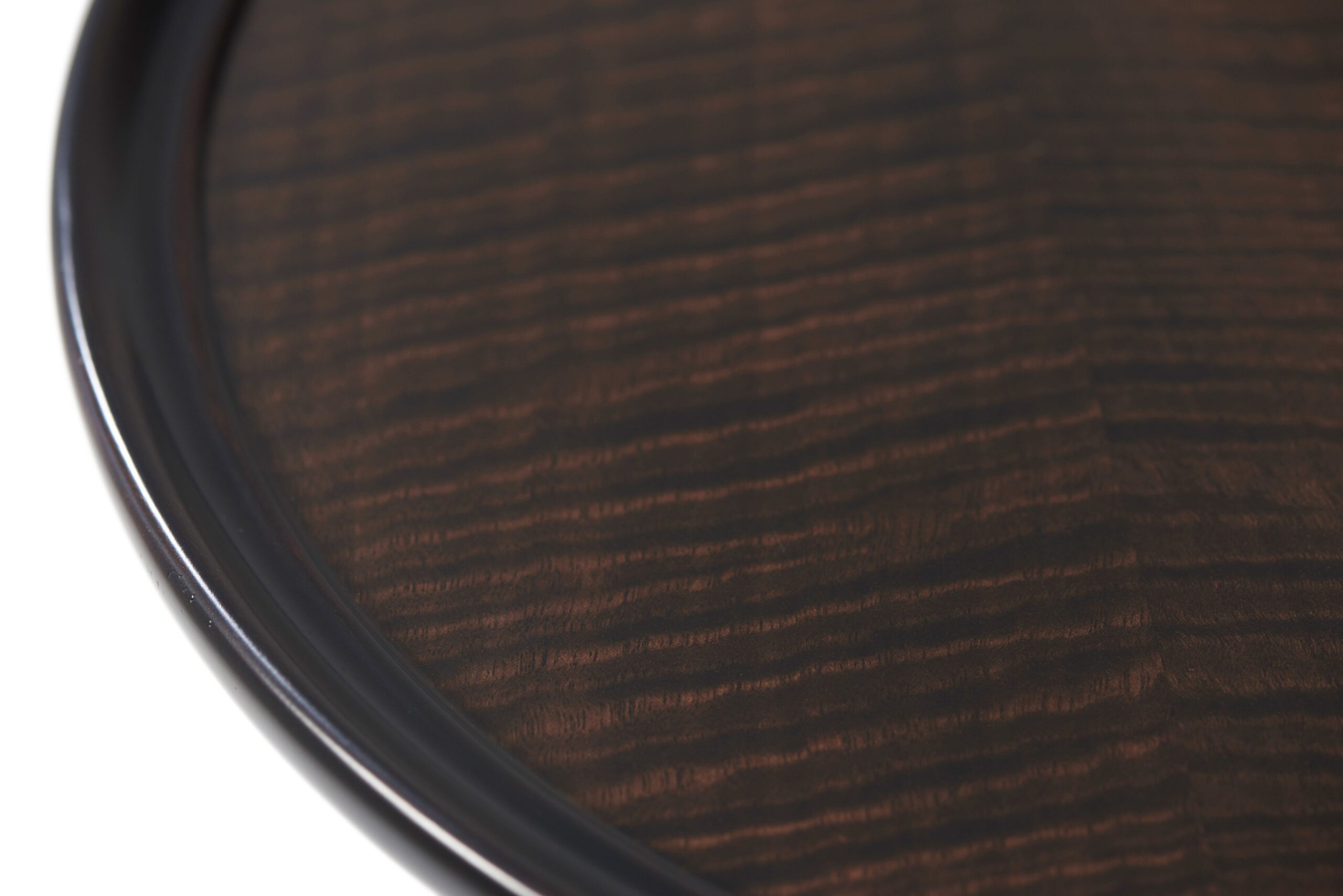 Τραπέζι πλαϊνό σε καπλαμά Amara Ebony στο καπάκι και κυματοειδή πόδια από μαόνι.