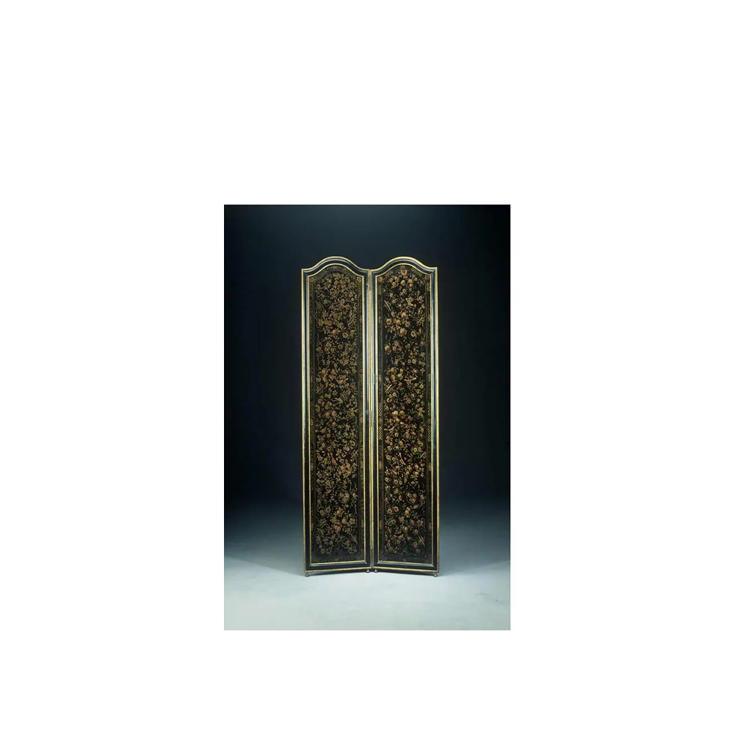 Παραβάν Chinoiserie, σε μαύρη λάκα, με παραστάσεις λουλουδιών τοξωτή κορυφή, με πλαίσιο από φύλλο χρυσού.
