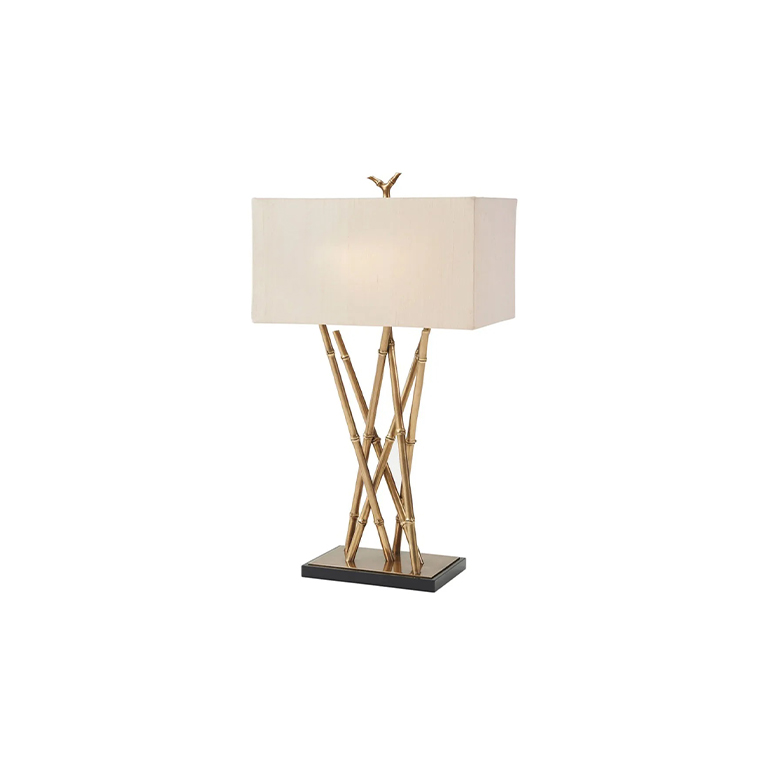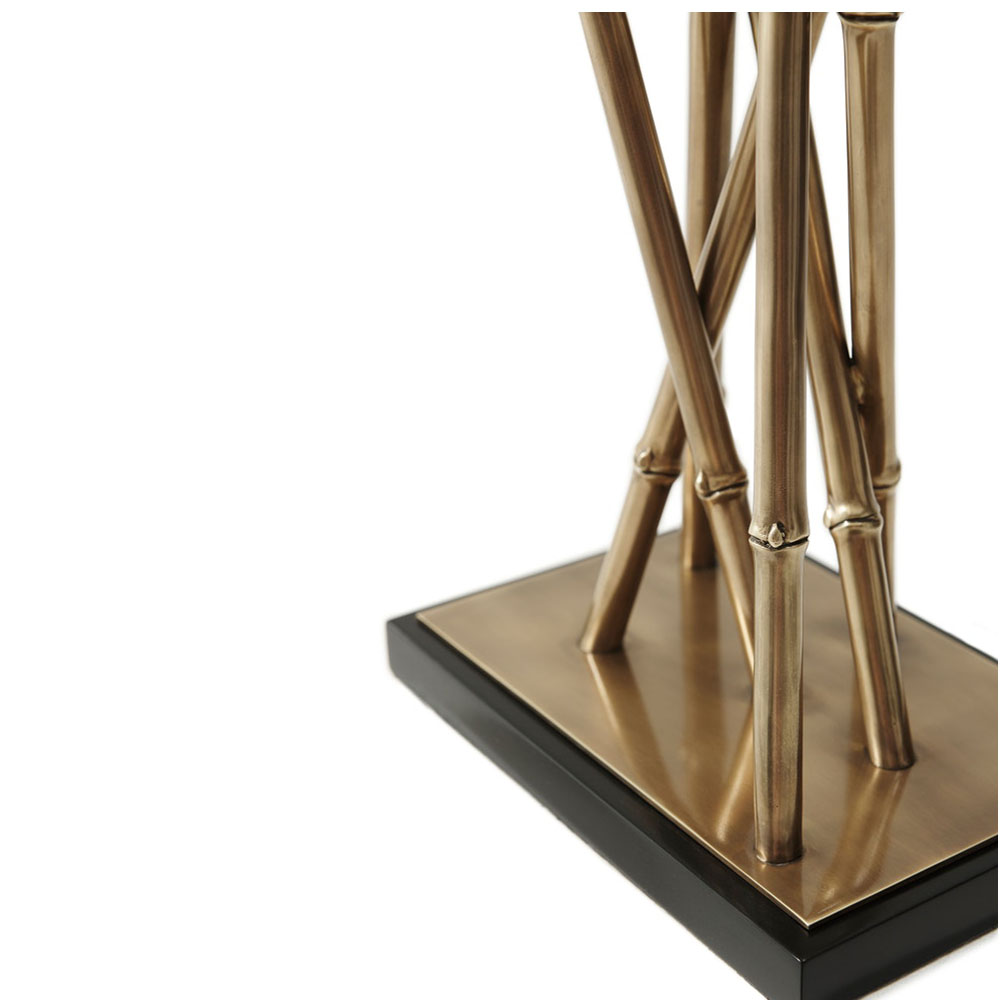 Επιτραπέζιο φωτιστικό με ορειχάλκινα κλαδιά “Bamboo”, με μαύρη λακαριστή και ορειχάλκινη βάση . Καπέλο με ύφασμα και τελική λεπτομέρεια “bamboo”.