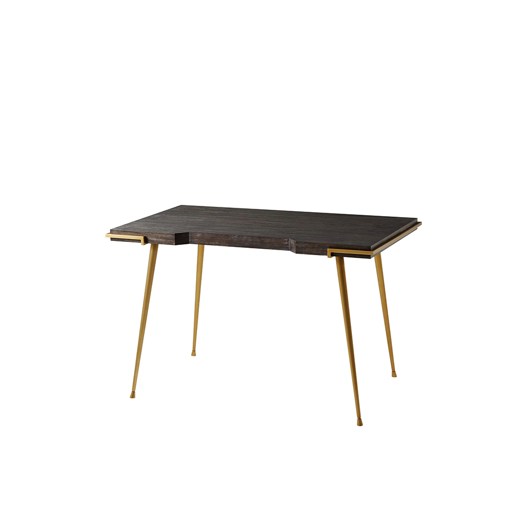 Γραφείο με καπλαμά Primavera, με ορειχάλκινα γωνιακά εξαρτήματα και κωνικά πόδια.