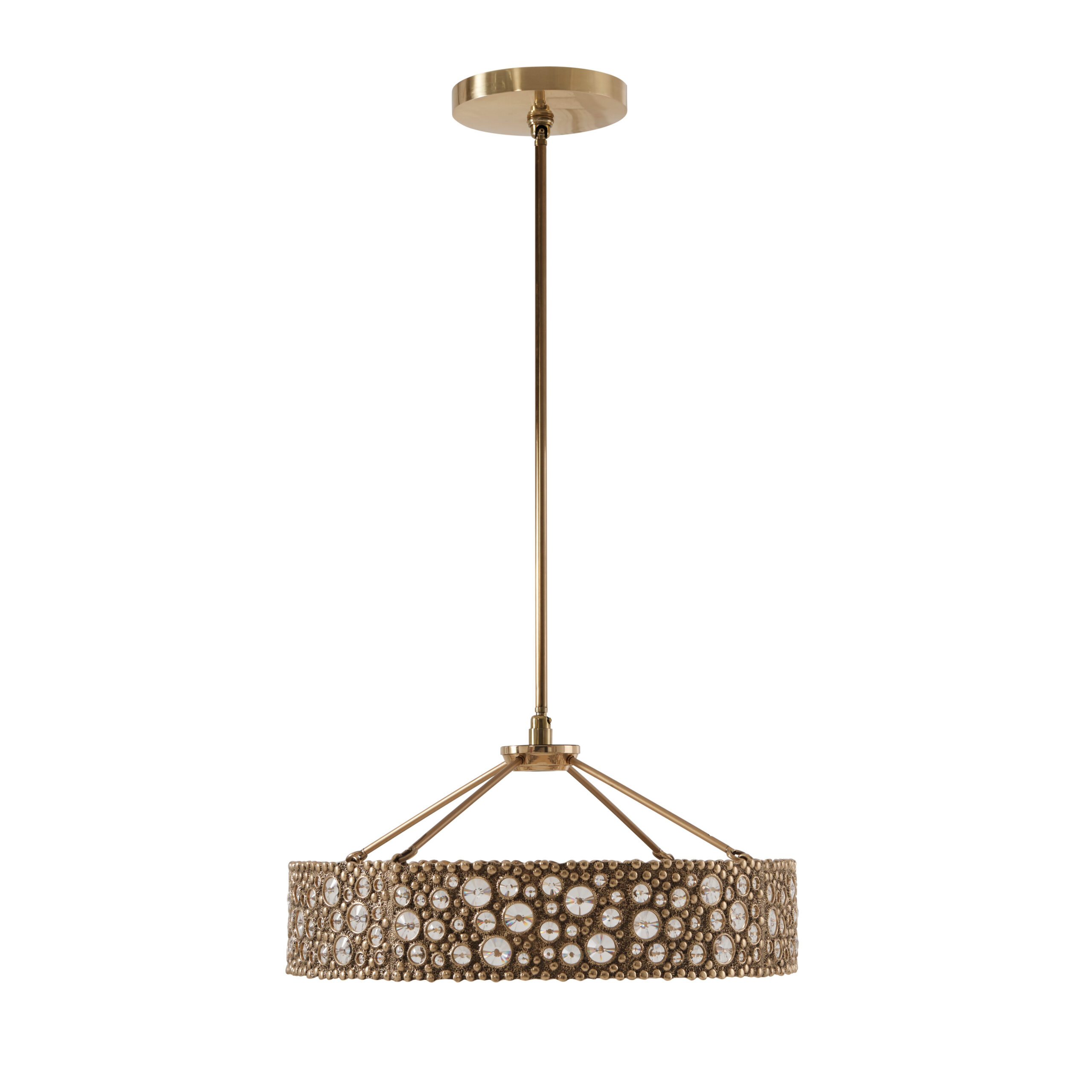 Φωτιστικό οροφής από διάτρητο ορείχαλκο, με ένθετα πολύπλευρα γυάλινα στοιχεία.
