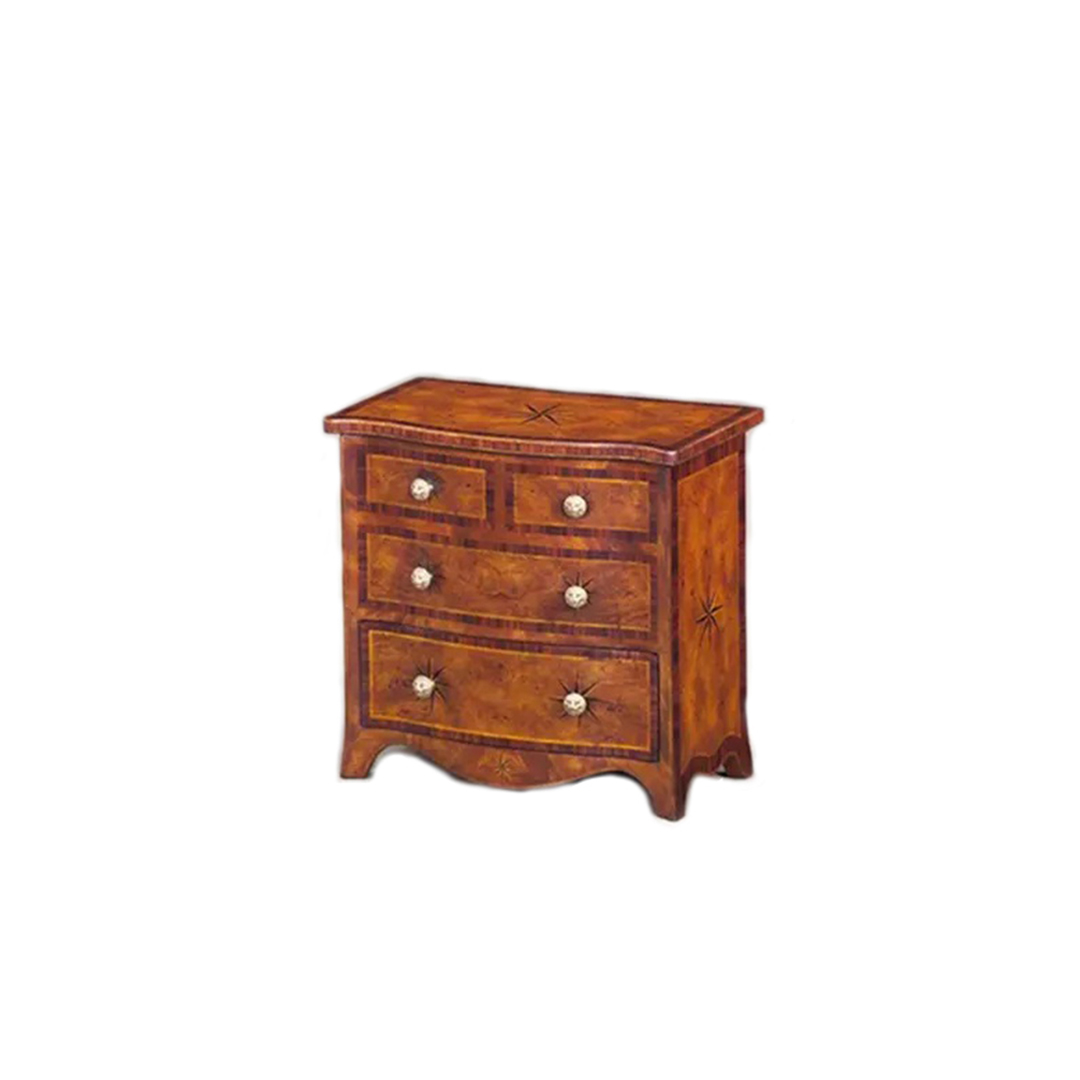 Κουτί κοσμημάτων από καπλαμά ρίζας & τριανταφυλλόξυλο, με ένθετο αστέρι στο καπάκι, πάνω από 2 μικρά, ένα μεγαλύτερο & ένα βαθύτερο συρτάρι. Εμπνευσμένο από αυθεντικό George III στυλ.