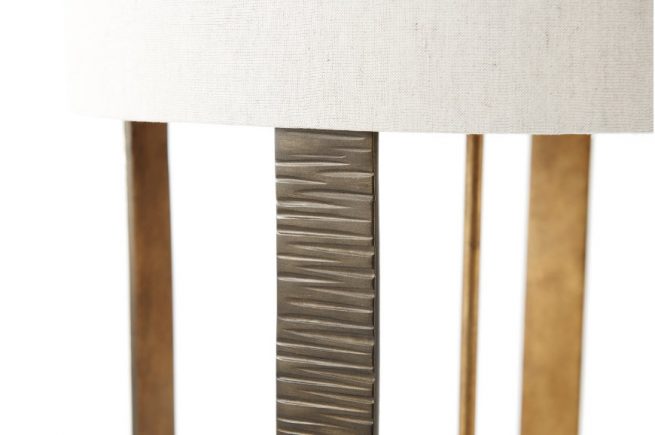 Επιδαπέδιο φωτιστικό από ατσάλι επεξεργασμένο στο χέρι που θυμίζει αγγεία από την Κλασική Αρχαιότητα.