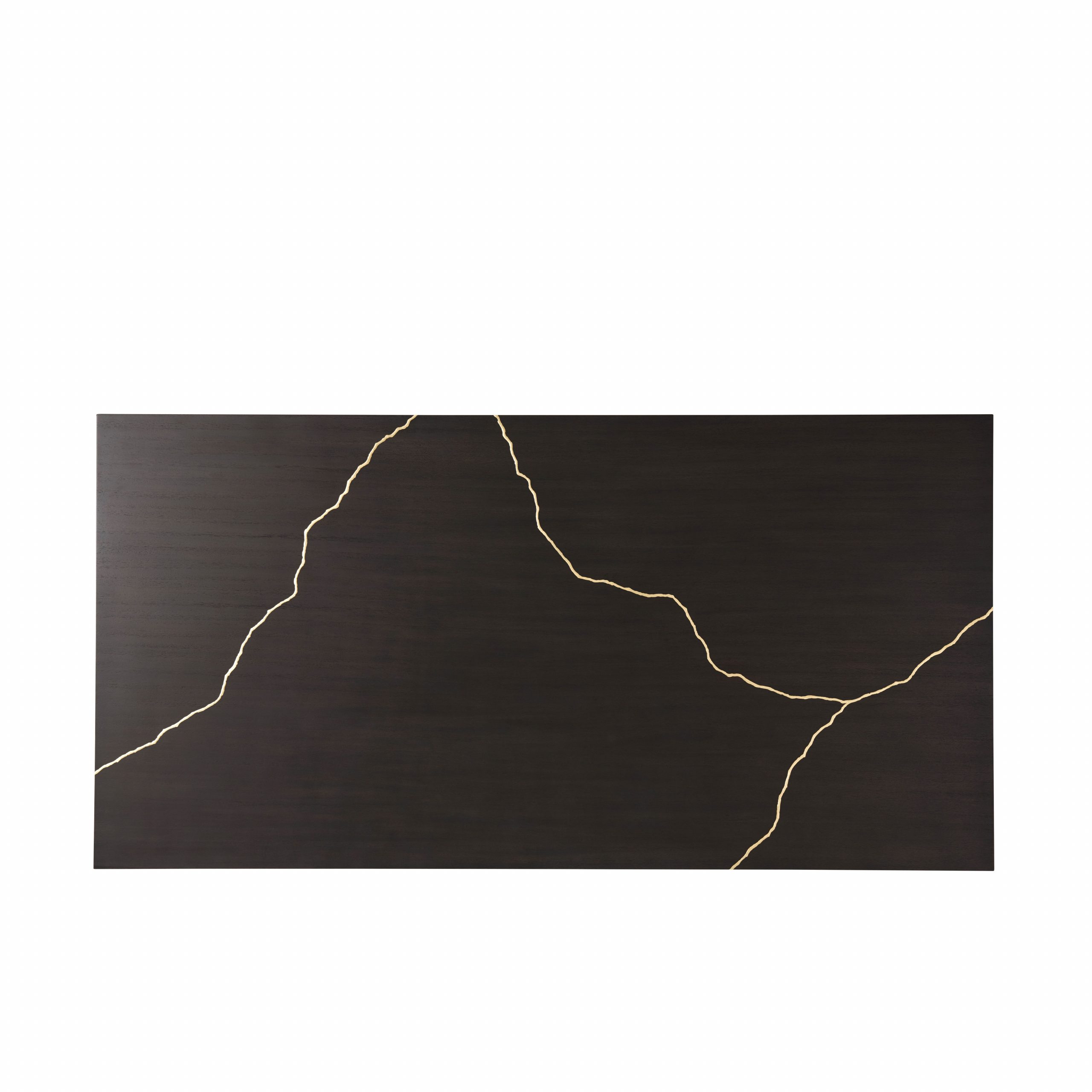 Τραπέζι σαλονιού από καπλαμά μαόνι με φινίρισμα Kasshoku και επιχρυσωμένες λεπτομέρειες στο καπάκι και στα πόδια.
