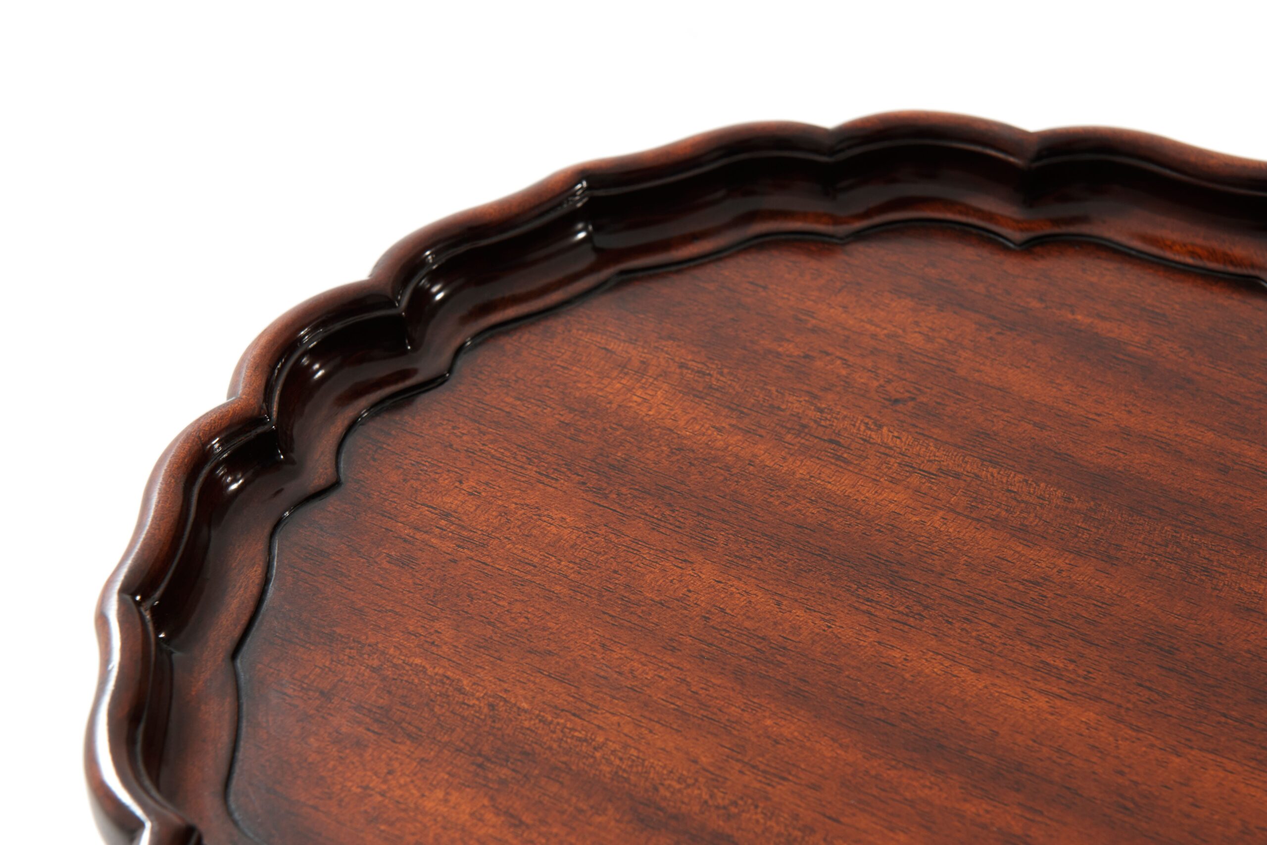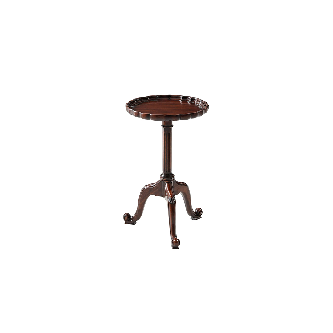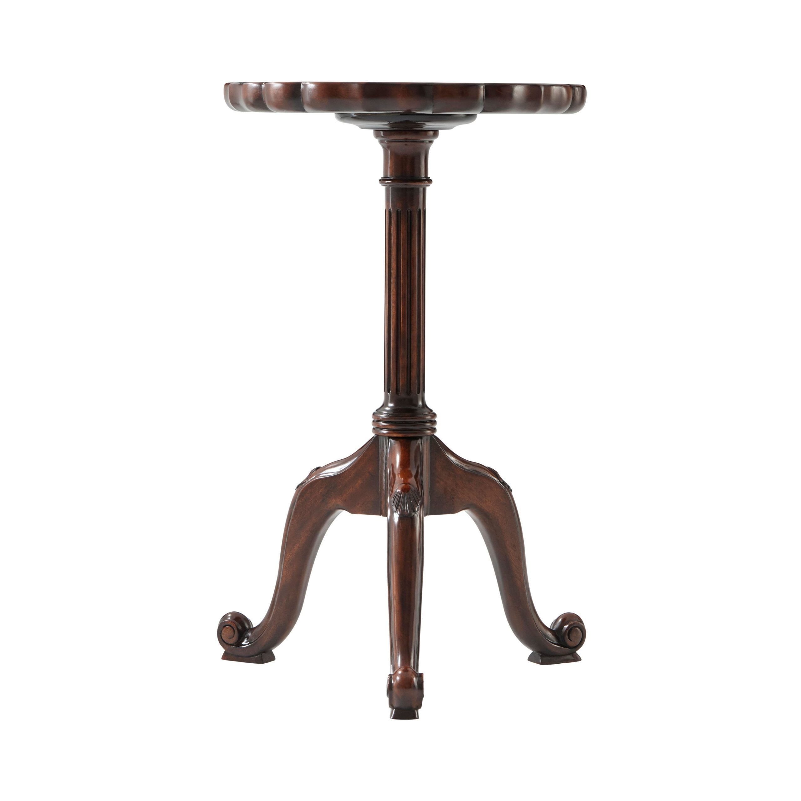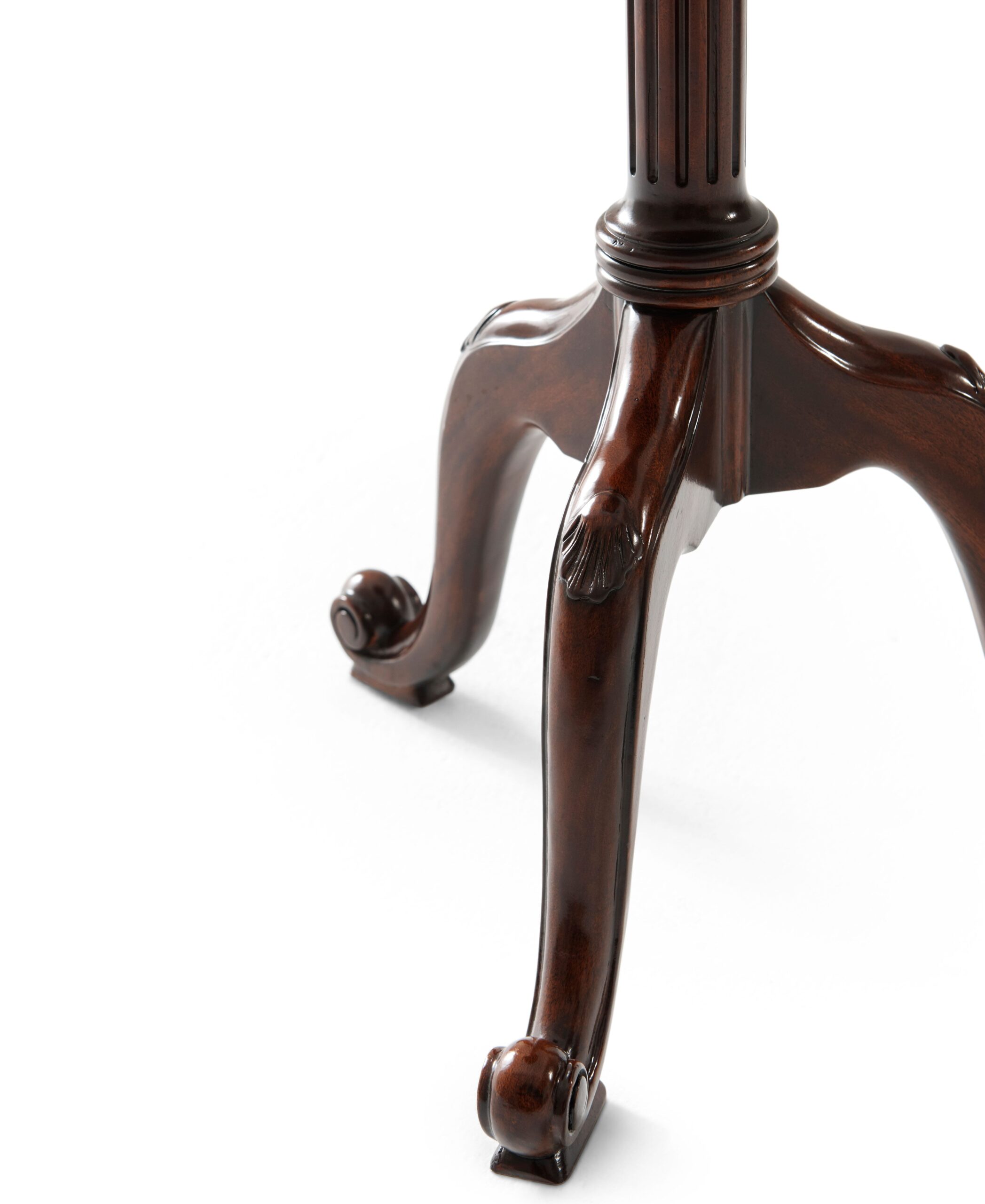 Στρογγυλό, χειροποίητο, σκαλιστό πλαϊνό τραπέζι, με ραβδωτή στήλη και τρίποδη βάση.