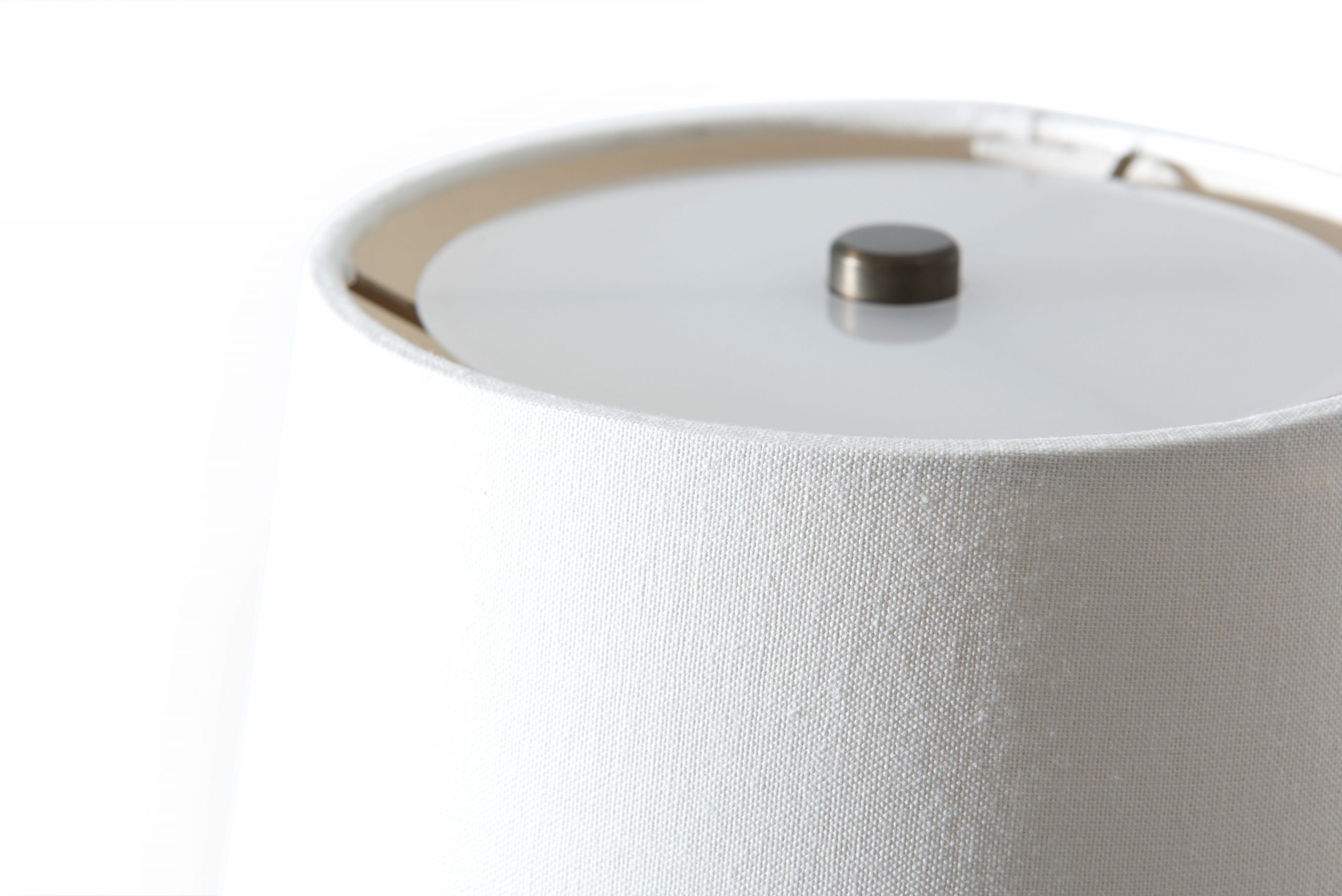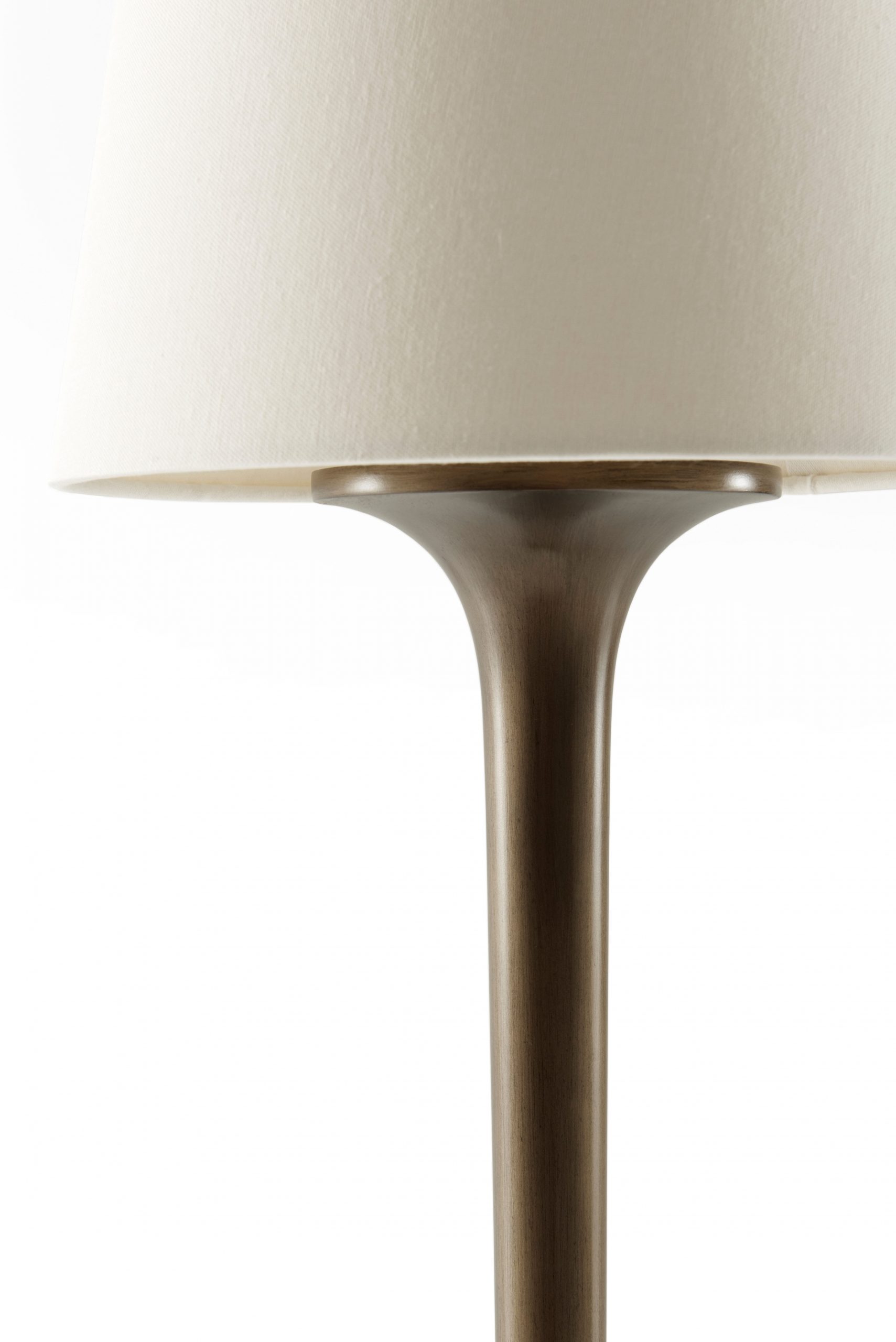 Επιτραπέζιο φωτιστικό με βάση από αλουμίνιο και ορειχάλκινο φινίρισμα ,με υφασμάτινο καπέλο.