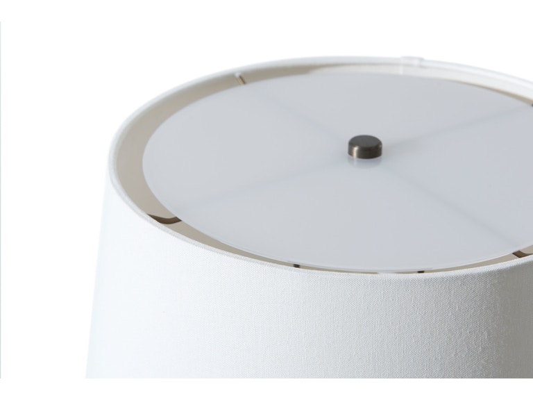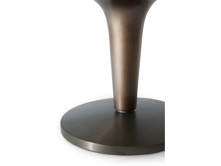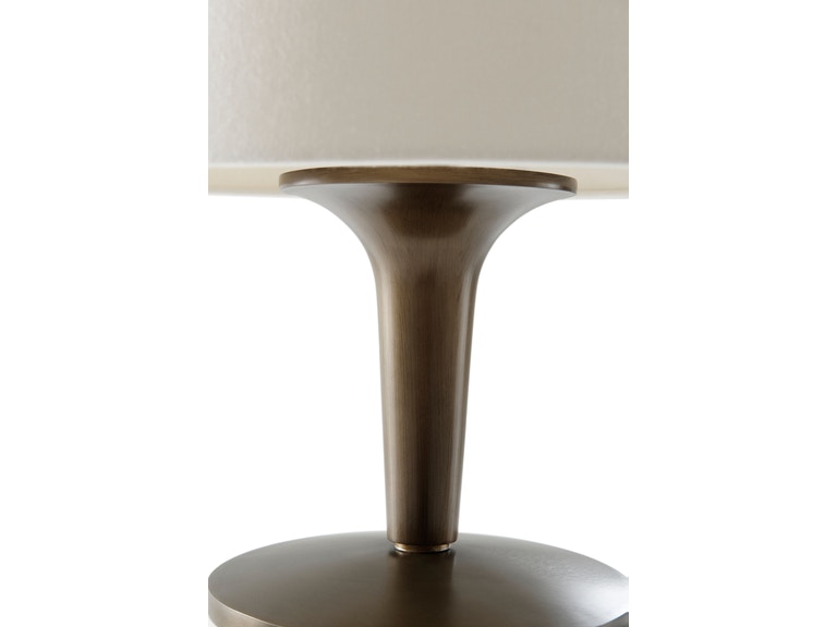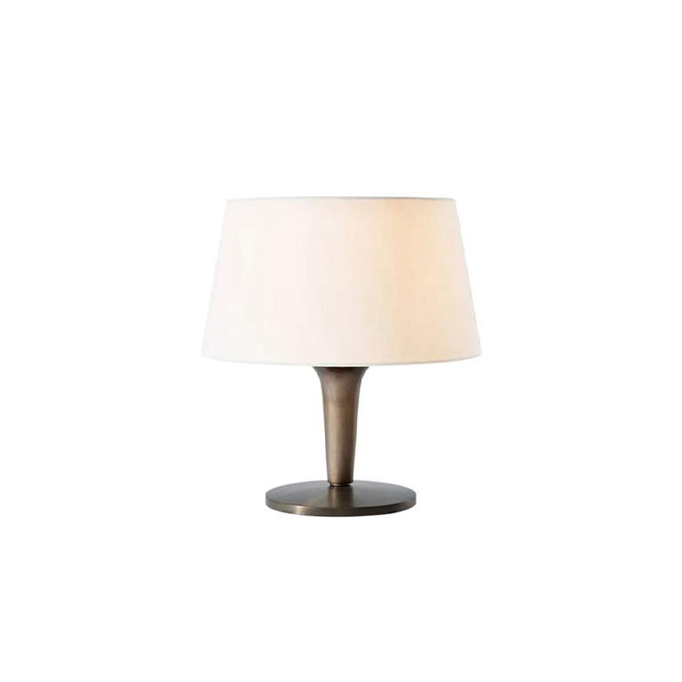 Επιτραπέζιο φωτιστικό με βάση από αλουμίνιο και ορειχάλκινο φινίρισμα, με υφασμάτινο καπέλο.