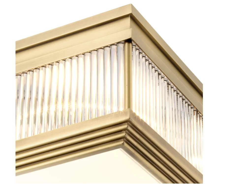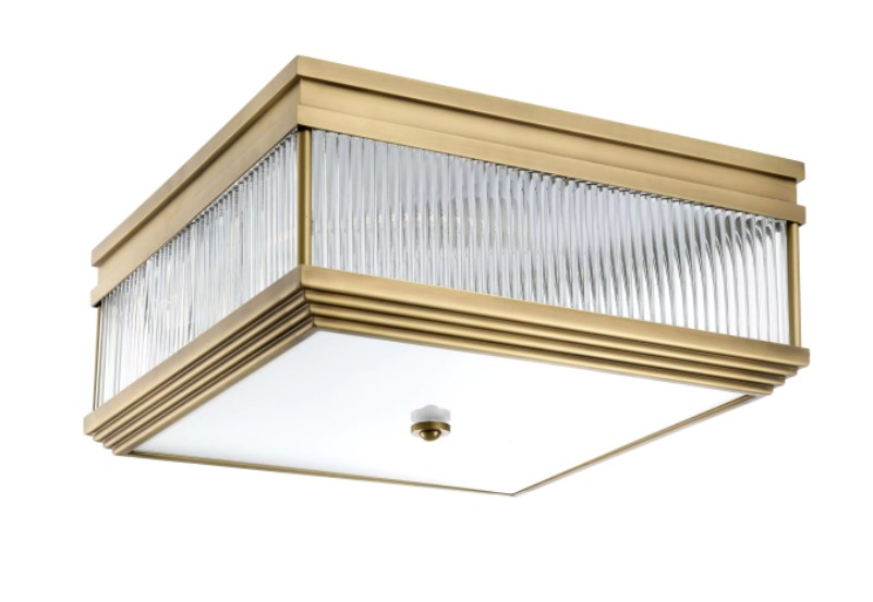 This flush mounted ceiling light has an antique brass finish and is ideal for lower height ceilings.