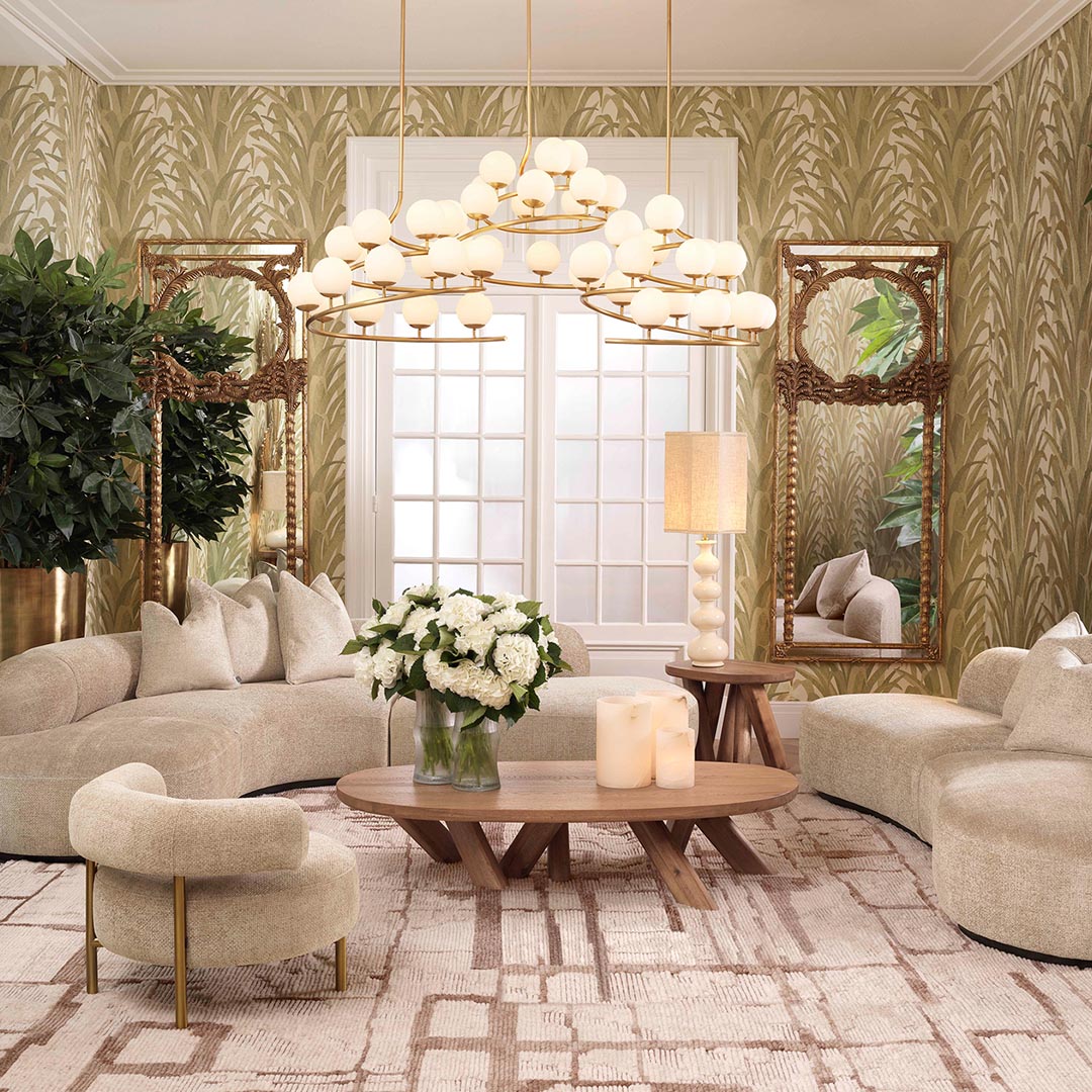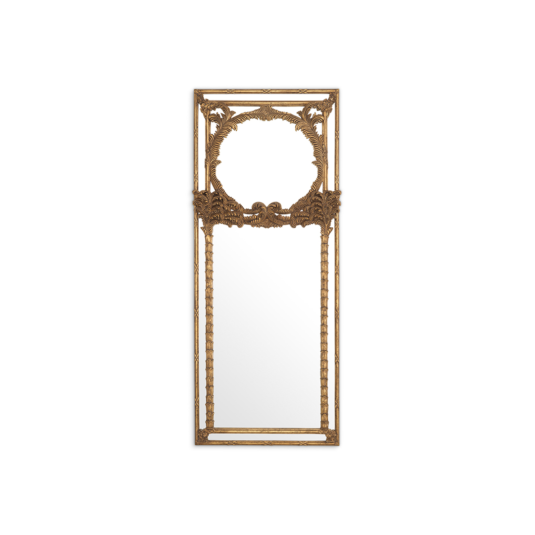 The mirror’s intricate details, including elegant palm decorations, add a touch of sophistication and regality to any living space.