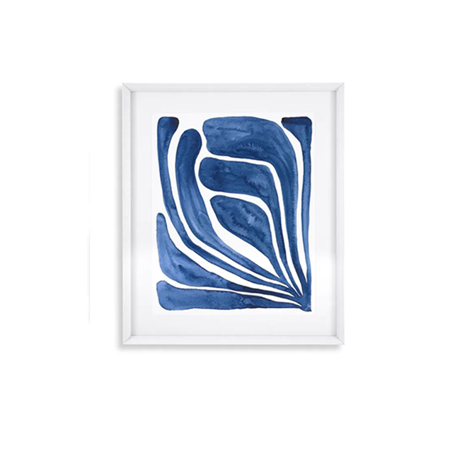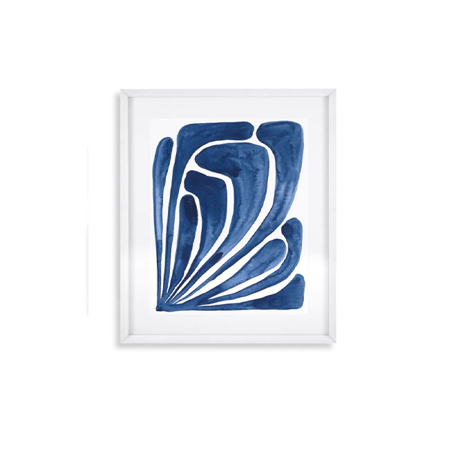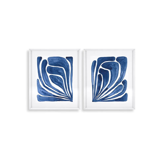 Somewhere between abstract and figurative art, this stunning 2-piece set of Blue Stylized Leaf Prints seamlessly fit into both modern and traditional interiors. These crisp blue works take inspiration from the cut-out art of Henri Matisse.