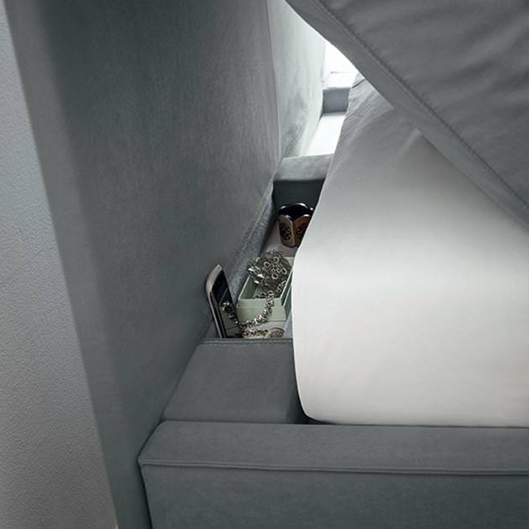 The stitching with its strong, exacting aesthetic impact outlines the edges of the cushions and bed frame recreating young, dynamic, tailored style and detail. Mattress size: 180x200cm