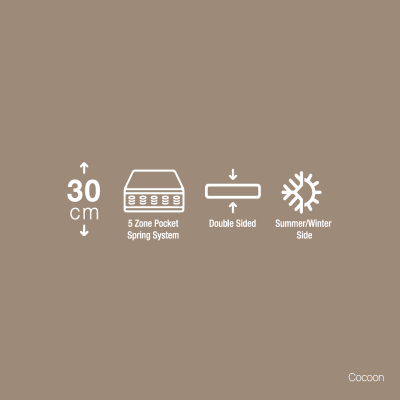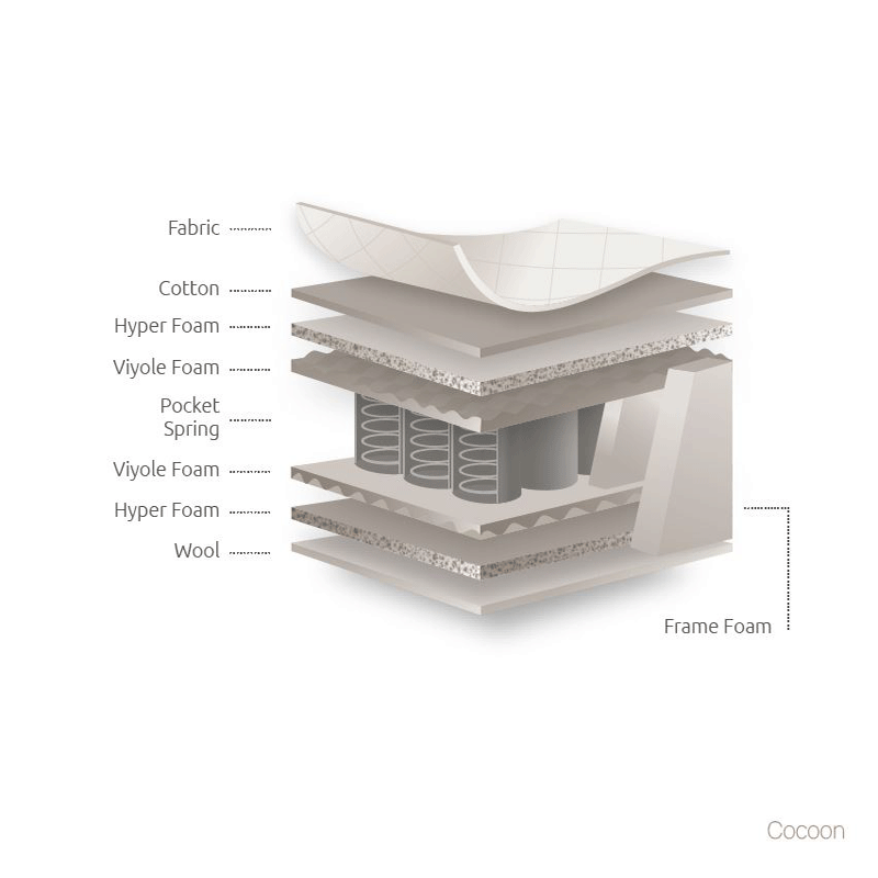 Cocoon mattress, uses foam on both sides to give the feeling of massage and allow natural air circulation.